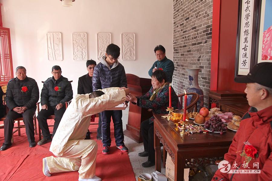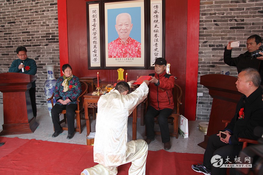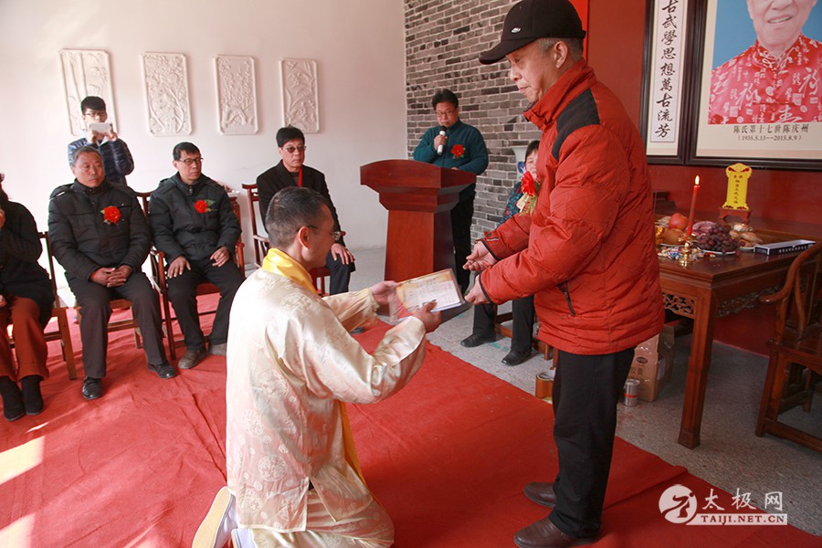 (太极网报道)2月12日,农历正月十六,陈庆州大师弟子、太极拳名家米广盛喜收新徒陈福柱,收徒仪式于温县庆州武院举行。 到场嘉宾 出席收徒仪式的嘉宾有,陈式太极拳第十二代传人陈有则、陈有京,太极名家赵乐意,太极网创始人、温县太极拳传承人联合会主席刘洪奇,温县报社主编王娟,焦作市中院宣教科科长王有利,中站区旅游局书记郑前进等。米广盛老师入门弟子及友人也赶到现场参加本次收徒仪式。 米广盛敬香行礼 陈福柱宣读拜师贴 递交拜师贴 敬拜师茶 师父米广盛训诫 见证人刘洪奇讲话 见证人刘洪奇签字 披挂绶带 颁发中华太极拳传承人证书 弟子与师父师母合影 尊古太极国际联合会主席、温县庆州武院院长陈有华主持本次收徒仪式,米广盛老师向其师尊太极拳宗师陈庆州敬香行礼。随后准入门弟子陈福柱近前行礼,自我介绍并宣读拜师贴。弟子向师父递交拜师贴,敬拜师茶。师父向弟子训话并于拜师贴上签字,见证人刘洪奇进行质询之后在拜师贴上签字。弟子聆听师父训诫并通过见证人问询,向师父行拜师大礼。米广盛老师亲自为弟子披挂绶带并颁发中华太极拳传承人证书,拜师礼成,陈福柱正式成为陈式太极拳第十三代传承人。 合影留念 米广盛向全体嘉宾表示感谢。向新入门弟子提出了要求,希望他能够恪守门规祖训,牢记太极拳传承人的使命,用心习练太极拳,研习太极拳文化,为太极拳的传播和推广做出贡献。 本站编辑:太极网陈超 |