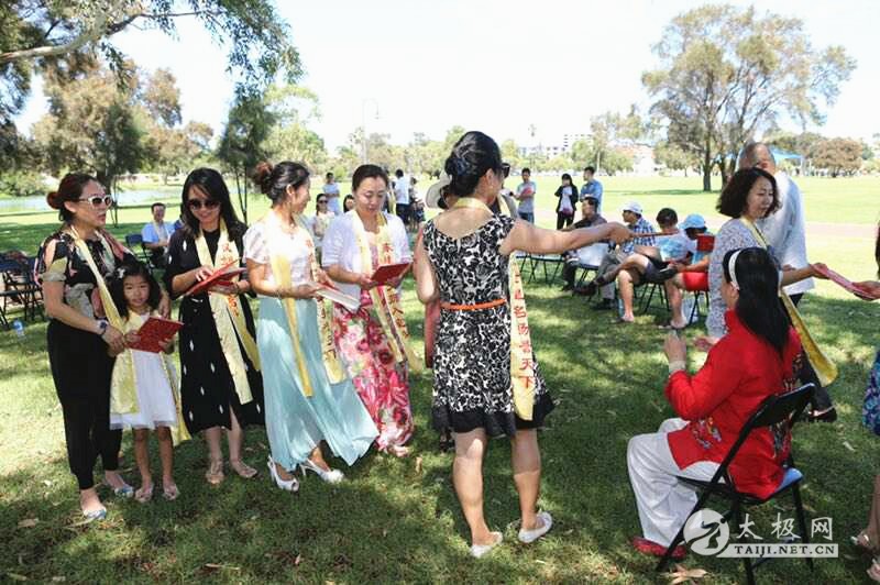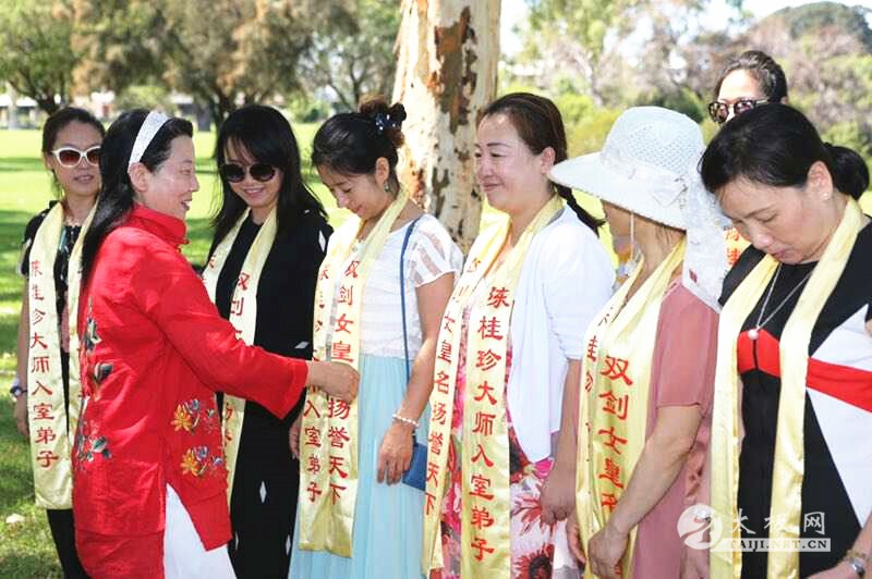 (太极网报道)3月4日,陈氏太极拳第十一代传人,"太极双剑女皇"陈桂珍老师在西澳珀斯举行隆重而传统的收徒仪式,本次共有24位太极拳爱好者拜入陈桂珍老师门下,成为陈氏太极拳的第十二代传人,为太极拳在澳大利亚地区的传播和推广增添强大的助力。 拜师仪式 出席本次拜师仪式的领导及嘉宾有,中华人民共和国驻珀斯总领事夫人邢超女士,杜玲领事,中华会馆会长丁少平先生,大华联会张野博士,河南同乡会长宋庭光先生及名誉会长闫兴先生,旗袍协会会长南竹会长夫妇以及西澳湖南同乡会暨总商会的朋友。家乡的父母官王玲书记特发来贺信,祝贺陈桂珍老师再收新徒并预祝收徒仪式圆满成功。 陈桂珍老师表示,非常高兴能够在西澳举办收徒仪式,十分感谢到场的所有嘉宾和领导,并希望新入门的弟子恪守门规祖训,用心学习太极拳,为太极拳在澳大利亚地区的传播和推广贡献自己的力量。陈桂珍老师此次赴澳旨在带着正宗陈家沟太极拳,让澳大利亚友人能够近距离的感受太极拳的熏陶,从而更好的学习太极拳,加深对中国传统文化的认知。 本站编辑:太极网陈超 |