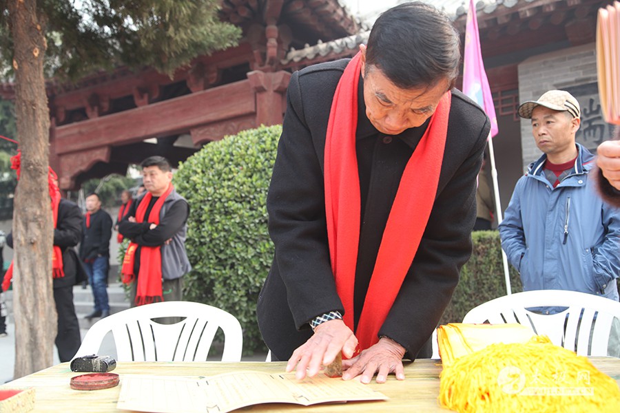 陈景安向太极拳始祖陈王廷敬香行礼 祭祖仪式由陈家沟陈氏家族理事会主任陈一华主持,陈三虎向太极拳始祖陈王廷敬香行礼敬酒,陈家沟陈氏家族族长陈景安向陈王廷敬香行礼敬酒。随后,收徒仪式正式开始。