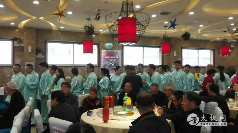 李树发为太极拳宗师陈金鳌上香 王海军和刘永强颁发优秀传承人获奖证书和奖杯 弟子刘平为师父寿宴送书法作品 弟子排队等候行拜师礼 陈凤英、李树发及夫人和弟子们合影 责任编辑:太极网丽丹 |