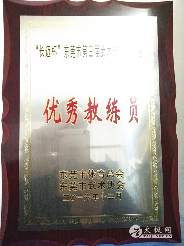 2016年获粤港澳金奖大赛集体一等奖 恭喜张辉老师荣获2016太极网“十大优秀馆校长”,希望他在新的一年中带领东莞长安鸿信太极馆为太极拳的传播和推广做出更多的贡献,再创新的辉煌! 文/太极网陈超 |
