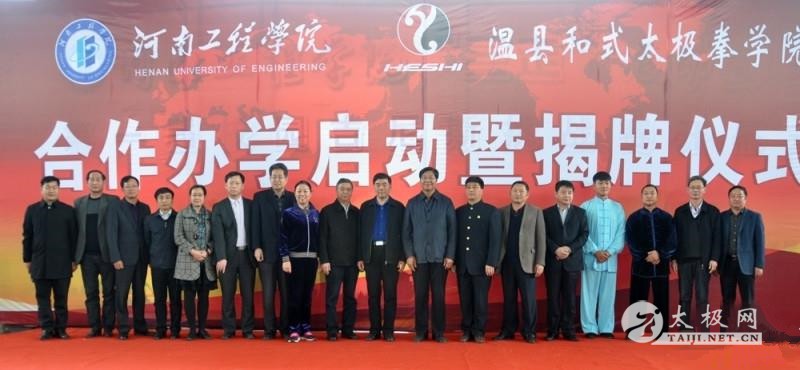 (太极网报道)3月29日,温县和式太极拳学院院长和有禄大师,焦作市常委、宣传部长贾书君,焦作市政协原副主席、和式太极拳协会名誉会长和金贵,温县县委常委、宣传部长侯向阳,温县县委宣传部副部长、温县太极拳武术文化管理中心主任王海昌,河南工程学院校党委副书记耿广智、副校长卢奎、学校宣传部、工会、对外联络处、教务处、学生处、机械学院、体育教学部等部门负责人,以及校教工太极拳协会、体育教学部全体教师、学生代表等社会各界的太极拳爱好者相聚河南工程学院龙湖校区体育馆,见证一个庄严的时刻——河南工程学院与温县和式太极拳合作办学启动暨揭牌仪式。 河南工程学院与温县和式太极拳学院本着优势互补、资源共享、互助互利的目标将和式太极拳推广传承下去。近年来,和式太极拳在世界各地的发展如火如荼,通过和有禄老师和众多太极拳传人的不懈努力和追求,和式太极拳于2014年12月3日名列在国务院批准公布的第四批国家级非物质文化遗产代表性项目名录及其扩展名录中。和有禄先生是和式太极拳第六代嫡系传人,中国武术八段,当代和式太极拳代表人物之一。现任温县和式太极拳学会会长,温县和式太极拳学院院长、国家一级武术裁判,优秀社会体育指导员。著作有《和式太极拳谱》、《中国武术段位制教程——和式太极拳》、《和式太极拳、械套路》及推手光盘。门徒遍布全国各地,以其高尚的武德和精湛的拳艺深得太极拳爱好者追捧。 揭牌仪式后,和有禄大师弟子李新蕾与王国武为大家带来精彩的和式太极拳套路及推手表演。至此河南工程学院与温县和式太极拳合作办学启动暨揭牌仪式圆满落幕。 和有禄表示,此次于河南工程学院签约对和式太极拳的进一步推广和普及意义重大,同时也是温县和式太极拳学院积极响应国家武术“六进”工作的一项重要举措,今后将会继续致力于太极拳的传播和推广,为弘扬太极拳这一传统武术贡献自己的力量。 本站编辑:太极网陈超 |
