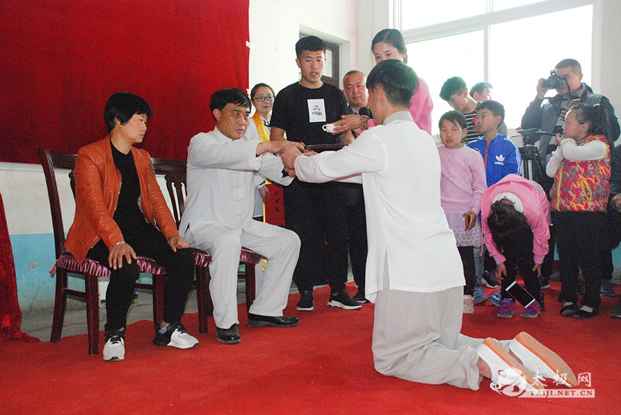 (太极网报道)4月2日,陈氏太极拳第十二代传人、中国武术七段、国家级裁判员、国家武术段位考评员、国家一级社会体育指导员、当代太极拳名家陈有刚收徒仪式于温县有刚太极武校隆重举行。本次拜入陈有刚老师门下的分别是郭五一、晁杰、秦相洲、张婧萱、王广堯、段佳鑫、崔冠华、牛群、陈鑫、许志凯、田伟龙、赵成功、胡少东、晁宇、杨景琨、王渝斌、马云峰、王鹏杰、赵居鑫、马云涛、常立斌等一批青年才俊。 拜师仪式现场 出席本次收徒仪式的嘉宾及领导有:温县政协副主席严双军,焦作市武协主席、市武术馆馆长张志远,焦作市武协副秘书长张瑞,温县宣传部副部长、太极拳武术文化管理中心主任王海昌,温县黄庄镇党委书记梁继宇,温县黄庄镇镇长杜艳飞,原温县体育局局长、太极网名誉主编原福全,温县体育局副局长崔德南,陈家沟景区管理局副局长任海林,河南省武术家联合会副秘书长王东方,温县体育局武术科科长万金良、副科长张治理,温县太极拳武术文化中心办公室主任刘高杰,徐吕村支部书记陈志德。 现场嘉宾 太极网创始人、温县太极拳传承人联合主席刘洪奇,温县报社王娟,中国太极拳网总编张邦坤等太极拳新闻媒体界人士也纷纷赶到现场祝贺陈有刚老师喜收新徒。漯河市武术协会副主席李栓成,漯河市太极功夫研究会会长李小琳,漯河市八卦掌研究会会长杨玉曾等也特地赶来参加本次收徒仪式。义煤巩铁煤业公司党委委员、纪委副书记张毅,江苏省建筑工程集团有限公司董事长张跃武,河南太极门业有限公司总经理赵文元,格力电器中央空调河南公司总经理张转运等商界精英也赶到现场为陈有刚老师送上了自己的祝福。 现场嘉宾 陈家沟太极拳功夫学校校长陈照森,陈家沟太极拳学校校长兼总教练陈冲,陈家沟太极辅导站总教练钦成民,陈家沟太极拳专修院院长、江苏精武太极文化传播有限公司董事长段卫星,陈家沟长流太极院院长兼总教练陈长流,形真武校校长兼总教练王喨,太极拳名家王勇、原胜利、张振江,山东星光太极拳馆馆长兼总教练侯哲,山东莒县陈家沟陈有刚太极拳推广中心主任兼总教练许佳俊,广州陈家沟腾飞太极拳馆馆长崔腾飞,林州陈照森太极拳研究会会长崔法强等陈家沟太极拳名声以及外省优秀太极拳传播者也赶到收徒仪式的现场向陈有刚老师表示祝贺。 刘洪奇 刘洪奇主持收徒仪式。仪式开始后,陈有刚老师向太极拳始祖及历代先贤敬香祭酒并行礼叩拜,以示礼敬先贤、尊师重道的传统礼仪。随后,新入门弟子依次上前递交拜师贴,行拜师礼敬拜师茶,师父回帖并亲自为弟子披挂绶带颁发传承人证书。 收徒仪式 新入门弟子马云峰代表发言,他表示将会恪守门规祖训,悉心求教,努力学习传统太极拳,为传播太极拳贡献自己的一份力量,为陈有刚老师师门增光添彩。陈有刚老师随后向新入门弟子训话,希望他们能够学好拳、做好人,不争强斗狠,不妄言他人短长,一心一意传承太极拳这一中华传统武术,为太极拳的发扬光大不懈努力。 马云峰发言 陈有刚训话 原福全作为本次拜师仪式的鉴证人代表发表讲话,他首先向陈有刚老师表示祝贺,并感谢陈有刚老师多年来为太极拳的传播和推广所做出的突出贡献,同时他还向新入门的弟子们表示祝贺,祝贺他们得遇名师,今后应当在陈有刚老师的教导下悉心学拳,成为优秀的太极拳传承人,为太极拳的发展贡献自己的力量。随后,严双军、王海昌、张毅等嘉宾先后发言,表示了对陈有刚老师喜收新徒的祝贺。 嘉宾致辞 仪式最后,新入门弟子集体向到场的嘉宾鞠躬致谢,随后弟子们纷纷上前与师父师母合影留念,留下这一美好的瞬间。至此,陈有刚老师收徒仪式圆满礼成。 现场合影 陈有刚老师首先向今天赶来参加收徒仪式的嘉宾及领导表示衷心的感谢,同时他希望今天新入门的弟子能够谨记门规恪守祖训,努力学习太极拳,传承国粹,早日成长为合格的太极拳传承人,为太极拳的传播和推广做出自己应有的贡献。 责任编辑:太极网陈超 |