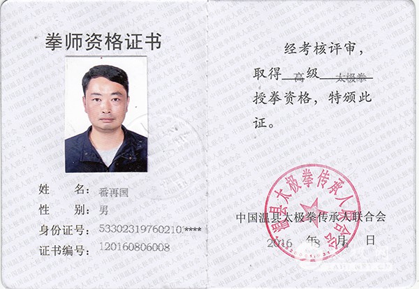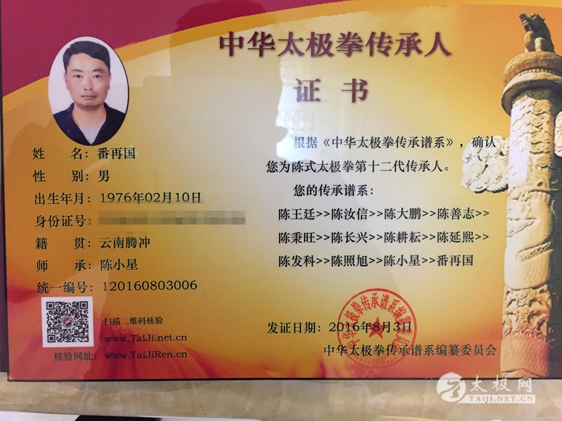 番再国在陈家沟 番再国,男,1976年2月10日生于云南省腾冲市。国际太极拳大师陈小星入室弟子,陈家沟陈氏太极拳第十二代传人,陈家沟陈氏太极拳百杰之一,现任陈家沟太极拳协会云南腾冲分会会长兼教练,太极网腾冲分站站长,中国武术协会会员、云南省武术协会委员。 番再国 番再国,中国武术五段、国家武术一级裁判员。 出于对武术事业的热爱及对陈家沟陈氏太极拳的忠爱,为响应国家号召,传承中华武术之精髓,于2017年出资创建了陈家沟太极拳协会云南腾冲分会,为众多云南腾冲的武术爱好者提供了一个交流、学习的场所。 番再国于2016年8月先后取得中国陈家沟第三届国际太极拳大赛一等奖金牌一枚,第十一届香港国际武术比赛一等奖金牌一枚、二等奖银牌一枚。 番再国在腾冲传播太极拳 番再国多年来一直坚持传播和推广太极拳,他希望能够通过自己的努力,让更多的人了解和认识太极拳,把自己的全部力量奉献给太极文化的弘扬、传承和传播,为推动全民健身运动做出自己的贡献。 番再国拳照赏析: 番再国在陈家沟 番再国在陈家沟 番再国在陈家沟 番再国在陈家沟 学拳电话:15911910760 拳馆地址:腾冲市极边印象酒店顶楼 本站编辑:太极网陈超 |