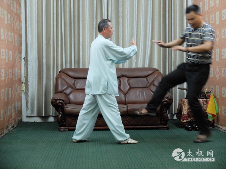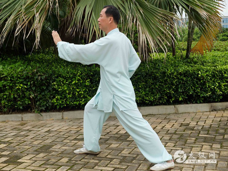 以杨氏太极拳115式大架为例说明,下肢站成开立步的拳式有“预备势”、“起势”、“十字手”、“云手”中的过渡动作等。我的一些初学的学生和弟子打拳练到以上拳式势时,开立步的两脚站成外“八”字,就是两脚分别外撇过多像个“八”字。 按规范的技术要求来说,杨式太极拳的开立步外形姿势是两足左右开立,距离同肩宽,脚尖皆朝前;陈式太极拳的开立步外形姿势是两足距离比肩略宽,两足尖微外撇。对于那些学生和弟子出现的外“八”字开立步,我指出不规范之处有几次了,但是还有部分人记不住改不了。于是我叫那些学生和弟子以对练方式来体验一下开立步桩为啥不宜站成外“八”字。 技术要求中的“脚尖皆朝前”是为了姿势漂亮好看吗? 我认为主要是为了在立身中正的状态下站得更稳一点。怎样体验呢?你试试分别以不同的脚下要求站两个开立步桩对比一下,第一个是外“八”字的开立步桩,第二个是“脚尖皆朝前”的开立步桩,同样是虚领顶劲、松肩垂手、松腰塌胯、扣足展膝的站桩,让师兄弟或者拳友喂一点劲力推按你胸部,通过这样的对练体验,你就会觉得第二个开立步桩比第一个开立步桩要站得稳;即使除去桩法,步子也是第二个开立步比第一个开立步要站得稳一点。 外“八”字的开立步桩为啥比不上“脚尖皆朝前”的开立步桩站得那么稳? 主要原因一是外“八”字开立步桩的两腿前胯与脚散开,不利于腿生力脚生根;“脚尖皆朝前”开立步桩的两腿是合胯合脚,有利于腿生力脚生根。二是外“八”字开立步桩的两腿前胯与脚散开,不利于扣足展膝产生的裆劲和膝劲;“脚尖皆朝前”开立步桩的前胯与脚要恰到好处的相合才有利于扣足展膝产生的裆劲和膝劲。 在此指出:如果不晓练合胯合脚和松腰塌胯、扣足展膝,两腿脚位再标准也没有那么好的功效。体验了就会心中有数,心中有数了就有利于改拳。 二、弓步的后脚和前脚要站合适 弓步,是太极拳运动中的一个基本步型,在拳架中用得较多的步型之一,弓步占拳架中步型的将近一半,足见弓步在太极拳运动中的重要地位和作用。弓步是我的一些初学的学生和弟子也好,其他太极拳初学者也好,对于弓步后脚或前脚定势时的角度是不大注重的,不知练法为啥这样站那样站。按规范的技术要求来说弓步的脚下角度,有前腿脚尖朝前的,也有前腿脚尖斜朝向对侧前方的;后腿脚尖斜向前方约45度,也有稍大于45度或稍小于45度的,不必死板地拘泥于脚尖斜向前方45度,后腿脚尖的朝向角度应该服从于拳势的实际需要,可以随时以脚跟为轴作适当调整的。 有些人打拳练到诸如“右搂膝左拗步掌”、“单鞭掌”“进步搬拦捶”的拳式定势时,弓步的前腿脚尖不是标准朝前,而是少许外撇(脚尖外撇大约二十几三十度),这样的弊端是前实腿之胯与脚散开,不利于腿生力脚生根。 你不妨分别以不同的脚下角度站三个弓步桩对比一下,第一个弓步桩的前腿脚尖外撇大约二十几三十度,第二个弓步桩的前腿脚尖朝前,第三个弓步桩的前腿脚尖内扣大约二十几三十度(亦称前腿脚尖斜朝向对侧前方的弓步),同样是虚领顶劲、含胸拔背、前腿松腰落胯、气沉丹田、开胯圆裆、后腿松腰塌胯的站桩,让师兄弟或者拳友喂一点劲力推按你胸部,通过这样的对练体验,你就会觉得第三个弓步桩站得最稳,其次是第二个弓步桩,相对最差的是第一个弓步桩。 为啥原因呢? 第三个弓步桩的前腿脚尖内扣大约二十几三十度,有利于前腿胯根内收和松腰落胯,所以站得最稳;不足之处是不利于前脚的外撇或外碾。所以适合下一个动作不用前脚外撇或外碾的拳势,如“翻身撇身捶”、“翻身撇身掌”。“翻身撇身捶”的下一个拳式是“卸步搬拦捶”,换拳式的初始动作不用转变前脚角度,而是左腿开胯带动左脚外碾。第二个弓步桩的稳固度居中,由于脚尖朝前的角度有利于前脚外撇、外碾或内扣、内碾,方便进步和退步,所以在拳架中用得最多。第一个弓步桩的前腿脚尖外撇大约二十几三十度,这是拳病所为。 有些人打拳从“揽雀尾”练到“单鞭掌”、从“左搂膝右拗步掌”练到“右搂膝拗步掌”、从“右倒撵猴”练到“斜飞势”、从“扇通臂”练到“翻身撇身捶”、从“左玉女穿梭”练到“右玉女穿梭”的拳式定势时,弓步后腿脚尖不是斜向前方约45度,而是斜向前方少许或十几度,这样的弊端也是后腿之胯与脚散开,不利于腿生力脚生根。你不妨分别以不同的脚下角度站两个弓步桩对比一下,第一个弓步桩的后腿脚尖是斜向前方少许或十几度,第二个弓步桩的后腿脚尖是斜向前方约45度,同样是虚领顶劲、含胸拔背、前腿松腰落胯、气沉丹田、开胯圆裆、后腿松腰塌胯的站桩,让师兄弟或者拳友喂一点劲力推按你胸部,通过这样的对练体验,你就会觉得第二个弓步桩站得最稳, 为啥原因呢? 第二个弓步桩的后腿脚尖是斜向前方约45度,有利于后腿合胯合脚,有利于裹裆挺膝形成腿生力脚生根,所以站得最稳。 在此指出:如果不晓练合胯合脚和裹裆挺膝,后腿脚位再标准也没有那么好的功效。 在练以上拳式时,倘若由于腰胯和踝关节不够松而不能一步到位的或内扣或内碾成脚尖是斜向前方约45度,可以分成两步完成,按照我在《中华武术》杂志2016年第3期发表的《杨氏太极拳115式大架的练法与技术内涵》文中介绍的“边沉边转边碾脚”去