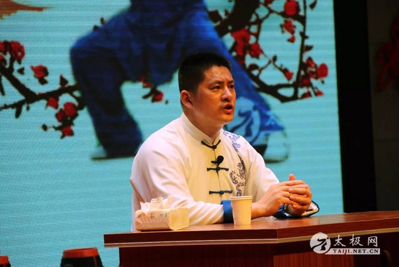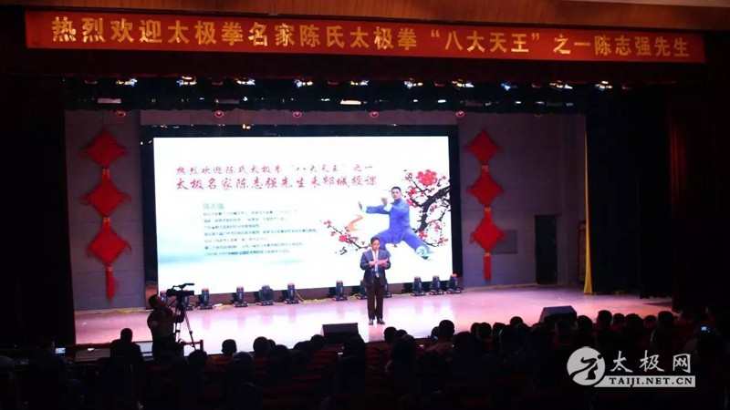 (太极网报道)2017年4月15日,郯城县文广新局、郯城县体育工作办公室联合举办了陈氏太极拳学习班,并邀请了陈家沟陈氏第十九世、陈氏太极拳第十二代传人、陈家沟太极拳“八大天王”之一、陈家沟太极拳研究会会长兼总教练陈志强老师到场授课。400多名太极拳爱好者参加了本次课程。