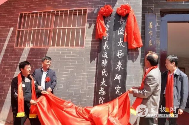 祭祖收徒仪式后,全体嘉宾成员来到陈长流大师家门前,参加“长流太极拳研究会“以及”陈家沟长流太极院”揭牌仪式。