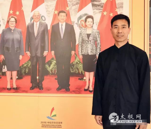 (太极网报道)4月20日,陈氏太极拳嫡宗传人、陈家沟国际太极院院长陈炳老师受弟子王铁之邀,由智利飞抵秘鲁,进行为期4天的太极拳教学访问。 陈炳在中国住秘鲁大使馆 21日,根据日程安排,陈炳老师在中国驻秘鲁大使馆进行了一场太极拳讲座,并在王铁和张竹的协助下,陈炳老师亲自带领大使、参赞、武官及使馆工作人员体验了一次神奇的陈氏太极拳放松功,使这些远离家乡的亲人深深感受到了祖国传统文化的精髓和魅力。 陈炳在给贾桂德大使调整太极拳动作 玻利维亚和秘鲁是友好邻邦,曾两次率队在陈家沟国际太极院学习的费尔南多先生不久前刚刚荣任玻利维亚外交部长,听说陈炳老师在秘鲁开班授课,立刻组织队伍要前来拜访并学习,后因公务在身,费尔南多部长要到联合国开会,遂委派夫人亲自带队前来,并在美国打来问候电话,同时和陈炳老师商讨在玻利维亚开办太极拳分院的事宜。 玻利维亚现任外交部长费尔南多 费尔南多及夫人在陈家沟国际太极院学习 费尔南多夫人率团到秘鲁首都利马拜会陈炳院长 费尔南多夫人转交外长的礼物:玻利维亚“羊驼绒服饰” 23日,王铁借师父此次访问之际,在当地华人代表及武术届朋友们的帮助下,“陈家沟陈炳太极院秘鲁分院”正式挂牌成立。 |