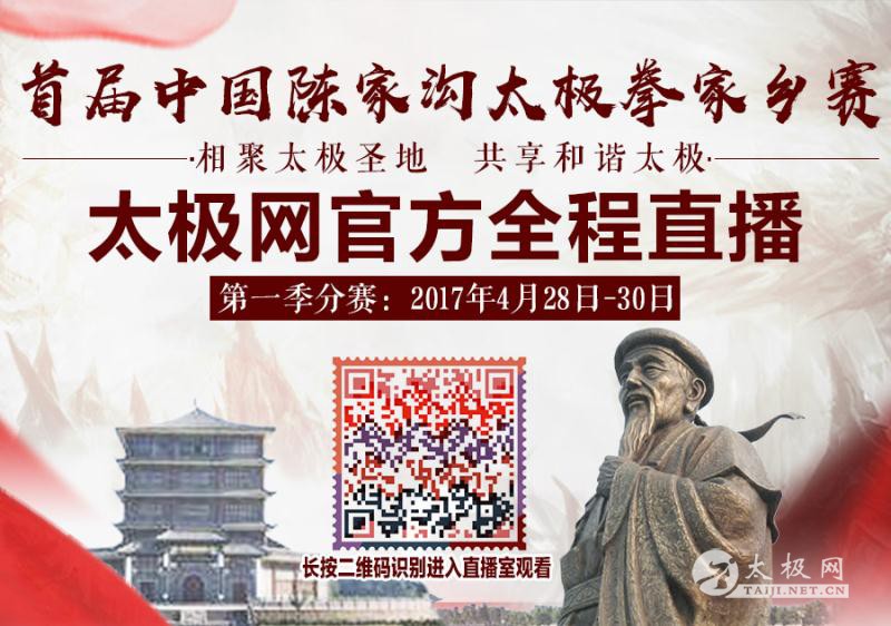 首届中国陈家沟太极拳家乡赛第一分季赛将于4月28日至30日火热开赛,为了让广大拳友更好的观看体验太极拳发源地高端赛事,由太极网通过微信官方平台直播,中国联通提供网络支持,对赛事进行全程直播。让全球拳友通过网络共享太极拳发源地家乡赛精彩,共赏参赛选手太极拳英姿!