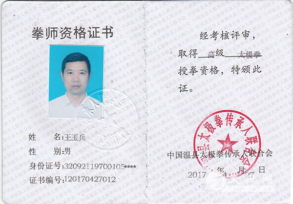 2014年 拜陈氏太极小架第十二代传人王大昭师傅为师,学习陈氏太极拳小架。