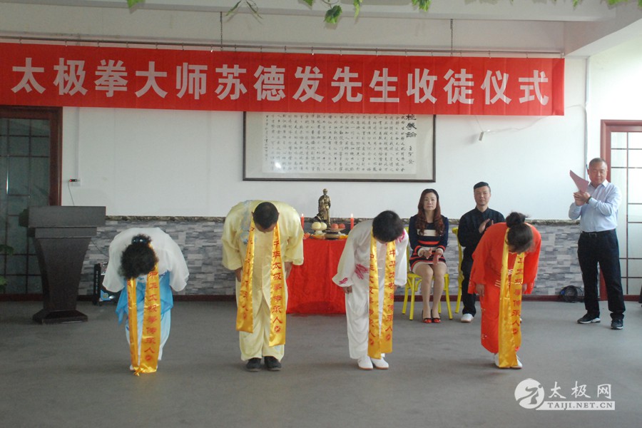 (太极网报道)4月30日,太极拳名家苏德发收徒仪式于新郑太极养生馆举行。本次拜入苏德发老师门下的有许秀娟、包水秀、徐永忠、徐伟泳、查茜菁等5名优秀的太极拳爱好者。 现场嘉宾 参加本次收徒仪式的嘉宾有太极网创始人、温县太极拳传承人联合会主席刘洪奇,温县太极拳杂志社总编王娟,新郑市太极拳协会会长敬红卫,世通拳法研究会新郑分会会长、新郑市太极拳协会常务副会长乔军喜,新郑市计划生育服站书记、新郑市太极拳协会副会长贾桂玲,新郑市太极拳协会副会长段秀琴,新郑市太极拳协会副会长刘秀举,江西省九江市武术协会副会长、修水市凤凰武馆馆长王卫彬,新郑太极拳协会秘书长付瑞玲,新郑市书法协会副会长尹书喜以及苏德发老师的弟子等。 刘洪奇 刘洪奇主持拜师仪式,敬红卫作为本次拜师仪式的鉴证人宣读新入门弟子名单。弟子们依次上前,列队肃立,苏德发老师向太极拳始祖及历代先贤上香劲酒行叩拜礼。弟子逐个递交拜师帖行拜师礼敬拜师茶,师父回帖并亲自为新入门弟子披挂传承人绶带,颁发传承人证书。 拜师仪式 新入门弟子从苏德发老师手中接过代表太极拳代代相传、薪火相承的香烛,向太极拳历代先贤敬香行礼并在苏德发老师的带领下集体行叩拜礼,收徒仪式圆满礼成。 新弟子代表发言 新入门弟子代表包水秀发表感言,她表示自己和师兄妹们一定会恪守门规祖训,跟随苏德发老师用心习练太极拳,研修太极文化,早日成为合格的太极拳传承人,为太极拳的传播和推广贡献自己的力量。 苏德发 苏德发老师向新入门弟子训话,他希望弟子们能够传承和弘扬好太极拳这一国粹,肩负起太极拳传承人的使命,对外不争强好胜,对内不肆意评判他人短长,用心习拳,练好拳、做好人,努力成长成为弘扬太极拳文化的中坚力量。 敬红卫 乔军喜 敬红卫、乔军喜先后发表讲话,她首先向苏德发老师表示祝贺,并恭喜新入门地弟子得遇名师,希望他们能够在苏德发老师的教育指导下真正领悟太极拳的真谛,成为真正的太极人。 嘉宾讲话结束后,新入门弟子集体向今天到场的嘉宾鞠躬致意,随后乔军喜、敬红卫、贾桂玲、付瑞玲等几位老师为大家进行了精彩的太极拳表演。 乔军喜太极拳表演 敬红卫、贾桂玲、付瑞玲表演 苏德发老师表示,感谢今天赶来参加此次收徒仪式的嘉宾,并希望新入门弟子们能够迅速成长,为太极拳的传播和推广增光添彩,同时她还表示自己将会继续努力,为传承太极拳、弘扬太极文化不懈奋斗! 责任编辑:太极网小田 |