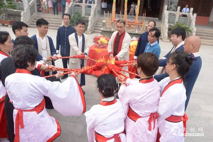 (太极网报道)4月30日,“乐道太极”三周年庆典暨系列文化纪录片《太极广西》开机仪式在南宁孔庙举行。陈家沟陈氏太极拳第十二代传人、南宁市“乐道太极”俱乐部创始人兼总教练董志鸿带领众弟子和学员向孔圣先贤告天祷祝。当天现场还举行了“太极汇”揭牌、挂牌仪式。 司仪引领众人缓步由大门进入 经过状元桥 来到大成殿前 董志鸿带领众人敬香献果,礼拜先圣 乐道太极走到今天已经有3个年头,为了纪念这个特殊的日子,现场举行了点燃圣火的环节。预示着乐道太极星火传承,生生不息! 在乐道太极俱乐部点燃的圣火火种传至活动现场 董志鸿老师引燃火把,并一支支地传递下去 现场表演 为了完备而系统地记录当代太极拳文化在广西的发展历程,更好地将国粹精髓太极拳发扬光大,由“乐道太极”和“太极汇”共同推出的《太极广西》系列文化纪录片,于当天举行了开拍仪式。“太极汇”是由董志鸿老师的入室弟子、陈氏太极拳第十三代传人刘荣林发起创立,并在本次乐道三周年庆典上,举行了隆重的揭牌仪式。 董志鸿老师和弟子刘荣林共同为“太极汇”揭牌 “太极汇”发起人与董志鸿老师合影 董志鸿老师领打陈氏太极老架十三式为《太极广西》系列文化纪录片拉开序幕 活动大合影 责任编辑:太极网小洁 |