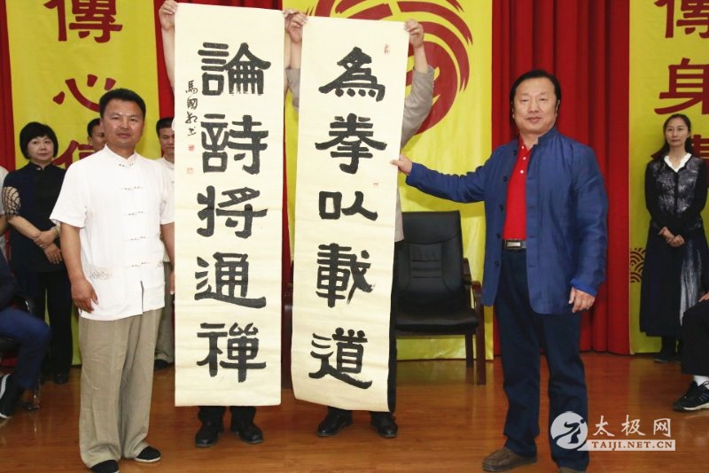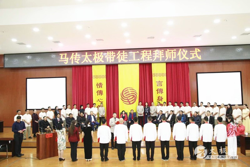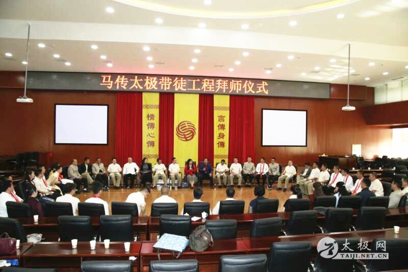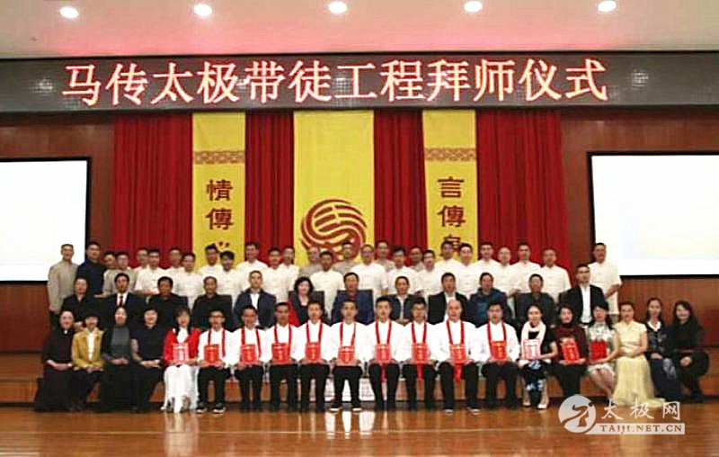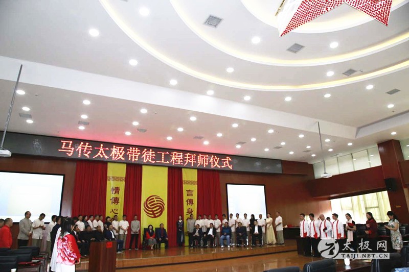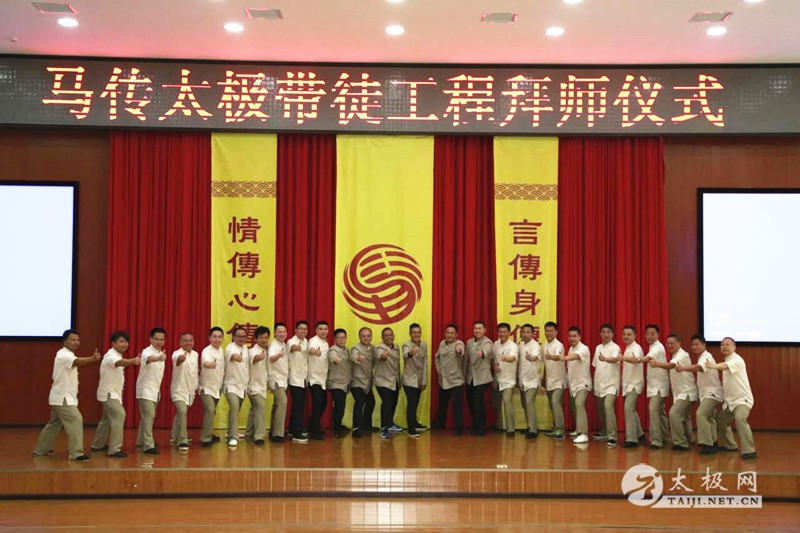 拜师仪式现场 拜师仪式由嘉宾熊嘉俊先生主持。参加本次拜师的15位记名弟子列队向师父师母及嘉宾致礼。陈致中先生宣读组委会关于同意接收顾世伟、李秀玲等15位记名弟子为入门弟子的决定;宣读马传太极门规,并当场征询记名弟子意见,确认其拜师意愿。新入门弟子作入门承诺。逐一宣读并呈上拜师贴,行拜师礼。并接受师父颁发的弟子证书及入门信物。依次向师父、师母敬茶、施叩首礼,收徒仪式圆满礼成。