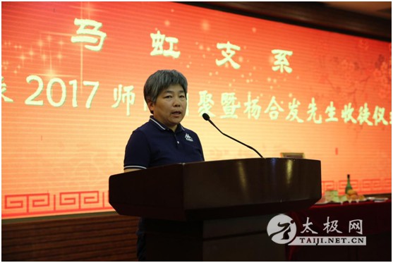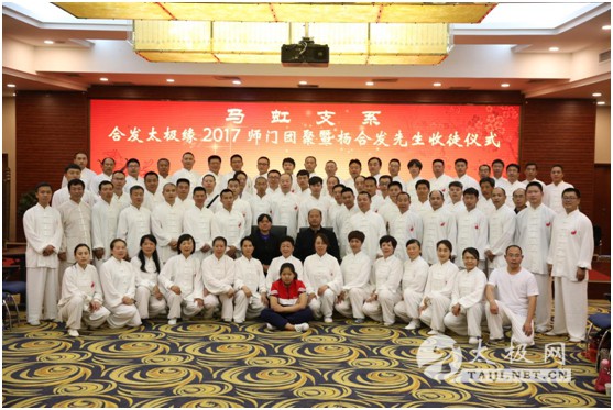 5月6日,陈式太极拳名家杨合发收徒仪式暨合发太极缘师门团聚活动在石家庄举行。 杨合发,传统陈式太极拳杰出传人,石家庄市陈式太极拳专业委员会会长,教授陈发科、陈照奎、马虹一脉相承正宗传统陈式太极拳,在传统陈式太极拳拳法拳理、以及传统哲理、运动医学、运动心理学、运动生理学、中医基础理论等方面造诣深厚。 活动开始前,杨合发老师带领全国各地师兄弟、太极拳爱好者、弟子100余人共同祭拜先贤马虹先生,在龙凤陵园祭拜马虹先师。 杨合发老师祭拜马虹先师 百位传统陈式太极习练者缅怀马虹先师 杨合发带领百余位太极拳习练者祭拜马虹恩师 收徒庄重、简洁,此次收徒仪式共收入门弟子13人,收徒仪式上杨合发表示:拜师只是起点,学好拳,努力传承是每个传承人义不容辞的责任,他希望新入门弟子能够恪守门规祖训,认真习练太极拳,将陈式太极拳忠实继承,将中国文化发扬光大,造福人类。 新入门弟子与师父、师母合影 马虹先生女儿郭彦芬女士前来祝贺 武术传承 代代延续 收徒仪式结束后,杨合发老师带领来自全国各地80余位弟子学习了马虹精神,并就陈式太极如何更好地传播造福人类,进行了广泛深入的讨论。 研讨会现场大家各抒己见 太极名家杨合发师门团聚合影 据悉,传统陈式太极拳距今已有400年历史,随着发展,门派也逐渐增大,目前已经延伸为陈、杨、吴、武、孙、和六大门派,而陈式太极拳是太极拳的始祖。近年来,传统陈氏太极拳马虹支系,依托传统、系统教学优势,秉承原原本本继承之原则,造福数以万计太极拳爱好者。传统陈氏太极拳作为第一批国家非物质文化遗产已入名录,据不完全统计,目前全世界练习太极拳的人数超过2.5亿。 相关链接: 太极名家杨合发老师 ——解读马虹精神 各位弟子: 大家好! 师门团聚是大家长时间以来的期望,因我们这个大家庭成员来自全国各地,相见一次不易, 有的未曾见过面,今天师门团聚,终于圆了我们的梦。 今天借这个机会,来一起学习马虹精神,分享他的精神价值所在,感悟他的精神境界。虽然先师已去,但是他的精神永存!他独特的拳法和技艺必将福泽后人。 我和恩师从相识到相知走过了二十一个春秋,我从恩师身上不仅仅是学到了拳艺,最重要的是跟恩师学会如何做人,他的精神影响我,并伴随着我成长,在我的人生征途上伴我前行。 回忆恩师一生,诚信务实,知恩图报,勤奋好学,勤俭节约,治学严谨,知足常乐,无私奉献。 一:是从太极拳传播方面决对做到了忠诚继承,从不添枝加叶,绝不故弄玄虚,从练拳到教拳都是专一专心,从难从严过细的按拳理拳法要求,一丝不苟的继承传播,做到了精研践,热忱传播,造福人民。 二:是恩师的人品,一生不图虚名,洁身自好,为人楷模,为人师表,恩师从做人方面,修炼人格是首要,他老人家经常教导我们说:“人生在世,要有善心,时时处处都与人为善”。 争做到日行一善,多做善事,积善为乐。还教导我们说:做一个人永远不能忘本。孝亲为做人之本,尊师为问学之本,诚信为立业之本,学问为济世之本,勤俭为持家之本,助人为快乐之本,吃亏是福,恩师这样教导我们,自己更是身体力行。从孝亲方面,恩师对四位老人(自己的双亲和岳父岳母)在床前尽孝,细心体贴,不辞辛苦;从尊师方面,虽然他比自己的老师大一岁,但是他对恩师的那份情,那份敬无人能比,学拳谦虚诚恳刻苦,当年陈照奎宗师教拳生活拮据,恩师马虹给老师交双份学费,没有人请老师教拳时,他多次把老师接到自己家中居住,给老师洗衣做饭,老师生病时更是在无微不至照顾老师的起居……其情其景感动老师,师徒两人关系甚为亲密,从诚信方面,恩师一生实实在在,一是一,二是二,言出必行,说到做到,从不打诳语,从感恩方面,恩师做的更是值得我们学习,师父那时一个月挣九十多块钱工资,分三份三十块钱给父母,三十块钱寄给师爷,三十块钱留做家用,其孝心可敬。恩师著作颇丰,但是他都是谦虚的讲都是老师的东西,饮水思源恩师每次出书都写明是陈照奎传授马虹整理,更可贵的是每次稿费都拿出大部分给陈瑜师叔。 2004年夏天,陈瑜师叔从河南回北京路过石家庄,给师父打电话要在石家庄停一下,师父那时已经是七十多岁了,叫上我,当时我们爷俩打车去高速路口接,等了一个多小时,可见师父对师爷的感恩之情。还有师父当初跟胡连生学了一阵拳,师父逢年过节都带上礼物去看望他,这种优良传统值得吾辈好好学习和发扬。学问方面,恩师一生 都是勤奋好学,他常讲活到老学到老 ,勤学善学,知识也是人生的宝贵财富,生命不止学习不止,永远有一个做学生的心态。勤俭方面,恩师一生不讲吃穿,不吸烟,不喝酒,不讲排场,一块毛巾用好几年,助人方面,恩师一生帮人无数。 三:是对太极拳执着追求,高标准定位,追求完美,对拳精益求精,追求它的正宗性和科学性,为了学好拳,恩师三下河南,两上北京,三次邀请陈照奎师爷到石家庄家中授拳,恩师用真诚之心,刻苦精神,孝心感动了陈照奎师爷,陈照奎师爷才把家传密传太极功法倾囊相授。 四:是刻苦精神。恩师常说要把这套拳弄明白,练到身上,必须要吃苦,能吃苦,他说到做到,在北京学拳时,他住的地方离陈照奎师爷教拳的地方比较远,他每天走都是路过去,而且是第一个到,脚都磨出了水泡,走路一拐一拐的。陈照奎师爷被他的吃苦精神感动,就让恩师到师爷家里去学,这样交流