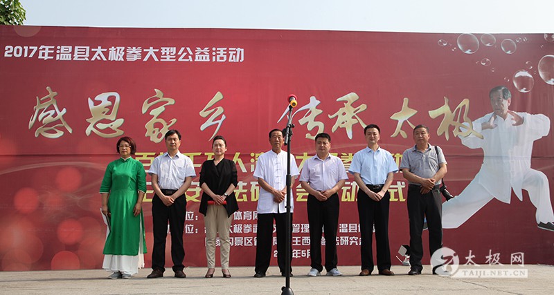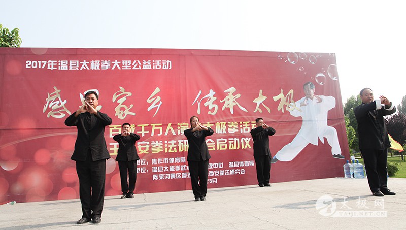 (太极网报道)2017年5月23日,“感恩家乡 传承太极”2017年温县太极拳大型公益系列活动暨百城千万人演练太极拳活动王西安拳法研究会启动仪式于太极拳发源地温县陈家沟太极拳祖祠隆重举行。本次活动既是2017年王西安大师太极拳公益活动的一部分,同时也是为积极响应焦作市委市政府、温县县委县政府以“一赛一节”活动为工作重心,积极组织百城千万人演练太极拳活动的号召,据悉本次活动共有来自全世界各地的王西安大师入门弟子以及王西安拳法研究会千余名成员参加。 现场嘉宾 本次活动由焦作市体育局主办,温县太极拳武术文化管理中心、温县体育局、温县陈家沟景区管理局、王西安拳法研究会共同承办。出席本次活动的领导及嘉宾有温县县委常委、宣传部部长侯向阳,温县人民政府副县长李美玲,国际太极拳大师王西安,温县县委宣传部副部长、温县太极拳武术文化管理中心主任王海昌,温县体育局局长宋明军,王西安拳法研究会会长闫素杰等。 侯向阳宣布仪式启动 王西安拳法研究会会长闫素杰致辞,并现场分配百城千万人演练太极拳活动任务书,王西安拳法研究会各分会代表上台接受任务并表示保证完成。 李美玲讲话 闫素杰致辞 分配任务书 李美玲发表重要讲话,她首先阐述了本次活动的重要意义,强调了太极拳作为温县名片和形象的重要地位,希望拳师们能够做好太极拳的代表,当好温县的形象代言,将太极拳推广到世界各地,最后她向王西安大师为太极拳发展和传播所做出的贡献表示感谢,对他不顾年事已高仍亲临太极拳传播第一线的崇高精神表示敬意,并预祝本次活动取得圆满成功。随后,侯向阳宣布“感恩家乡 传承太极”百城千万人演练太极拳活动王西安拳法研究会启动仪式正式开始。 太极拳表演 活动现场 张福旺、李天金、陈二虎、陈大虎、李利清等陈家沟太极拳名家登台表演,精彩的太极拳表演引发现场雷鸣般的掌声和阵阵喝彩,将现场气氛推向高潮。 张福旺授拳 李天金授拳 陈大虎授拳 李利清授拳 表演结束后,王西安老师亲自登台领练太极八式,张福旺、李天金、陈二虎、陈大虎、李利清等王西安老师亲传弟子也分别带领众人认真习练,活动现场充满了浓厚的太极拳学习氛围。 活动最后,王西安大师带领千余名弟子和研究会成员在中国太极拳博物馆前的太极八卦阵之上演练太极,天人合一、气势恢弘,为本次活动留下了最为浓墨重彩的一笔。 现场合影 责任编辑:太极网陈超 |