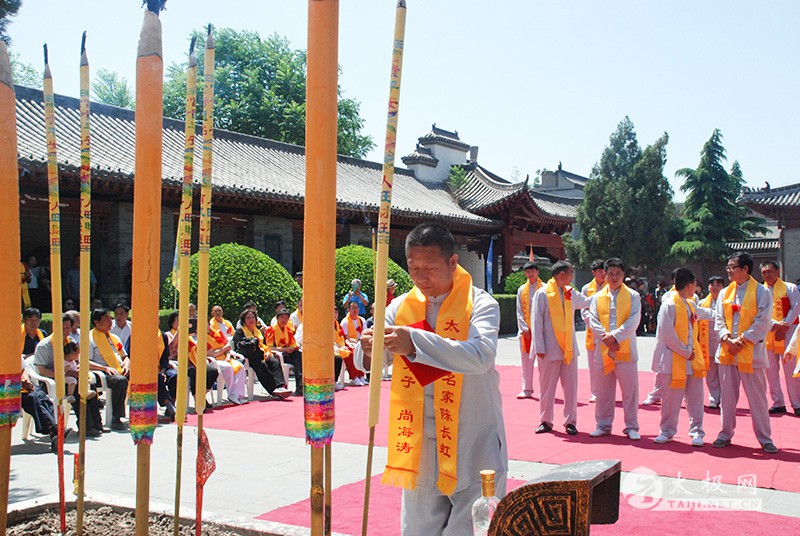 (太极网报道)5月25日,陈家沟陈氏陈氏十八世、陈氏太极拳第十代传人陈长虹六十六华诞暨祭祖收徒仪式于太极拳发源地温县陈家沟太极拳祖祠举行。本次拜入陈长虹老师门下的有胡景涛、郭金城、陈柱宏、陈爱琴、张云振、李红岩、荆成林、王好平、陈高文、陈桂萍、陈泰坤、雷福海、雷鸣、陈帅征、赵丽娜、赵子香、王小卫、谢小华、尚海涛、王东杰等二十余名来自全国各地的优秀太极拳爱好者。 严双军讲话 闫忙种主持活动 陈长虹训话 出席本次活动的领导及嘉宾有温县政协副主席、焦作市陈氏太极拳协会副会长严双军,温县太极拳研究院副院长、中国国家书画协会副主席史大华,温县电视台崔玉田,陈家沟景区管理局副局长牛占文,陈家沟景区管理局副局长任海林,温县文化馆馆长、县非物质文化遗产保护中心主任闫忙种以及陈家沟家族理事会陈景安、陈一华、陈世岩、陈国胜等。 现场嘉宾 闫忙种主持本次活动。陈家沟陈氏家族族长陈景安向太极拳始祖陈王廷上香、敬酒行礼。随后,陈长虹老师向太极拳始祖陈王廷及历代宗师上香、敬酒、行叩拜礼,祭奠先师风华,感念先辈恩德。新入门弟子依次上前递交拜师贴、行拜师礼,师父回帖。陈长虹老师向新入门弟子训话,严双军发表讲话。新入门弟子在陈长虹老师的带领下集体向太极拳始祖及历代宗师行礼,以示太极拳代代相传、薪火相承之意,拜师仪式圆满礼成。 祭祖仪式 收徒仪式 祭祖收徒仪式结束后,众人于陈家沟王庭大酒店共同庆祝陈长虹老师六十六岁寿辰。陈长虹老师表示,感谢今天参加活动的领导及嘉宾,感谢社会各界对本次活动的大力支持和对自己的关心,希望新入门的弟子们能够恪守门规祖训,认真习练太极拳,潜心研修太极文化,早日成为优秀的太极拳传承人,为太极拳的传播和推广贡献自己的力量,同时他还表示自己将会继续努力,为太极拳培养出更多更好的优秀人才,为传承和弘扬太极拳奋斗终生。 责任编辑:太极网陈超 |
