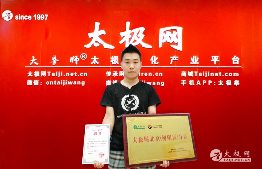 (太极网北京朝阳讯)5月25日,太极网(taiji.net.cn)北京(朝阳)分站正式挂牌成立,北京地区太极拳优秀传承人谢海江任分站站长。 谢海江在接受太极网北京(朝阳)分站站长聘任时表示,感谢太极网二十年来为太极拳传播做作出的贡献,更加感谢太极网对自己的信任,此次出任北京(朝阳)分站站长,自己将会以更加严格的标准来要求自己,同时继续加强太极拳的学习,无论是拳技拳法还是理论都需要比以前更加深入的了解。北京(朝阳)分站的建立也将进一步推进北京(朝阳)及其周边地区的太极拳的推广和传播工作。谢海江表示自己将会带领太极网北京(朝阳)分站为太极拳传承人、拳师、拳馆服务,致力于打造一个让广大太极拳爱好者互通有无、相互交流、共同进步的平台,共同为弘扬太极拳、传播太极文化不懈努力!