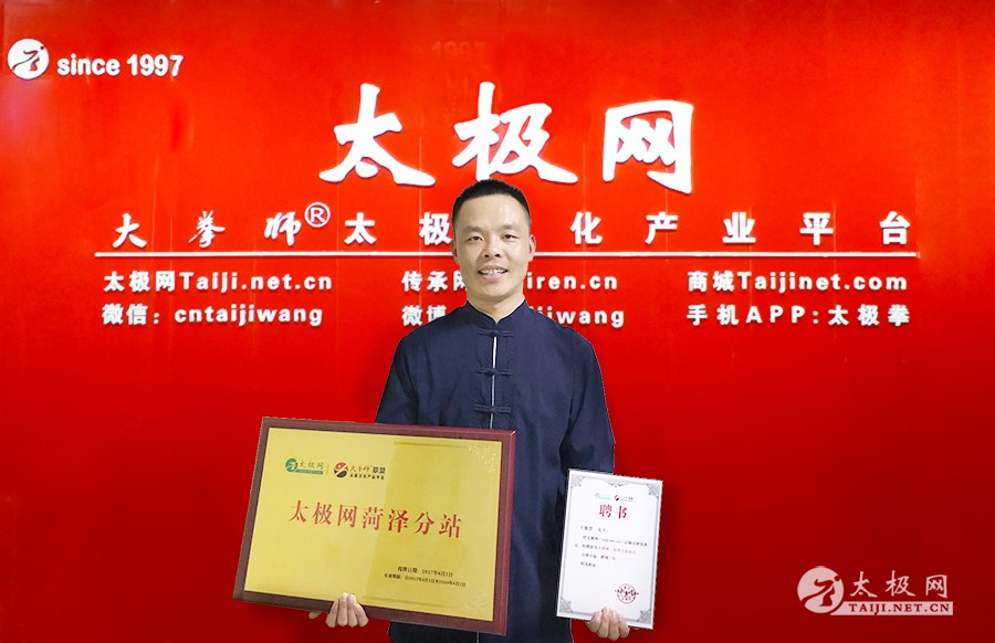 (太极网菏泽讯)6月1日,太极网(taiji.net.cn)菏泽分站正式挂牌成立,菏泽市太极拳文化研究会副会长王旭望任分站站长。 王旭望在接受太极网菏泽分站站长聘任时表示,感谢太极网二十年来为太极拳传播所作出的贡献,更加感谢太极网对自己的信任,此次出任菏泽分站站长,自己将会以更加严格的标准来要求自己,同时继续加强太极拳的学习,无论是拳技拳法还是理论都需要比以前更加深入的了解。菏泽分站的建立也将进一步推进菏泽及其周边地区的太极拳的推广和传播工作。王旭望表示自己将会带领太极网菏泽分站为太极拳传承人、拳师、拳馆服务,致力于打造一个让广大太极拳爱好者互通有无、相互交流、共同进步的平台,共同为弘扬太极拳、传播太极文化不懈努力!