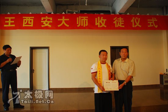 昨天上午,伴随着悠扬的古琴声,来自新乡、焦作等地的太极拳习练者、王西安拳法研究会的会员们,在帝苑大酒店养生馆进行了集体、器械表演,以他们特有的方式庆祝王西安大师喜收新徒。来自陕西宝鸡的太极拳协会副秘书长余郅铖习练陈式太极拳多年,非常热爱陈式太极拳,这次正式拜陈式太极拳“四大金刚”之一、国家级非物质文化遗产——陈式太极拳的首批传承人王西安为师,圆了多年梦想。 在拜师仪式上,余郅铖朗读拜师帖,并向王西安大师叩拜和递帖,王西安大师向余郅铖颁发传承书、入室弟子绶带和赠送著作,央视武林大会年度总冠军王战军和夫人樊晓辉作为见证人分别在传承书上签字和用印。 焦作陈式太极拳协会会长,曾任温县县长的阎文胜先生热情洋溢的主持了拜师仪式,温县体育局局长宋明军、文化局副局长严双军到会祝贺。陈家沟武术院、王西安拳法研究会新乡分会等分别向余郅铖赠送锦旗表示祝贺。   [page]
