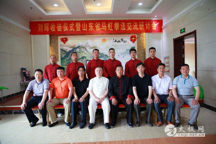 (太极网报道)5月31日上午,首届山东马虹拳法研讨会暨刘辉收徒仪式于山东省郯城县速8大酒店隆重举行。县有关领导,文化和教体部门、县著名企业领导,郯城县武术协会,山东、江苏马虹大师弟子——第十二代传人,第十三代传人,以及社会各界太极拳爱好者百余人出席参与了本次活动。 首先进行的是收徒仪式,本次有七位太极拳爱好者拜在马虹大师亲传弟子、陈式太极拳第十二代传人刘辉老师门下,壮大了马虹拳法传承的队伍,为太极拳传播注入了新鲜血液。