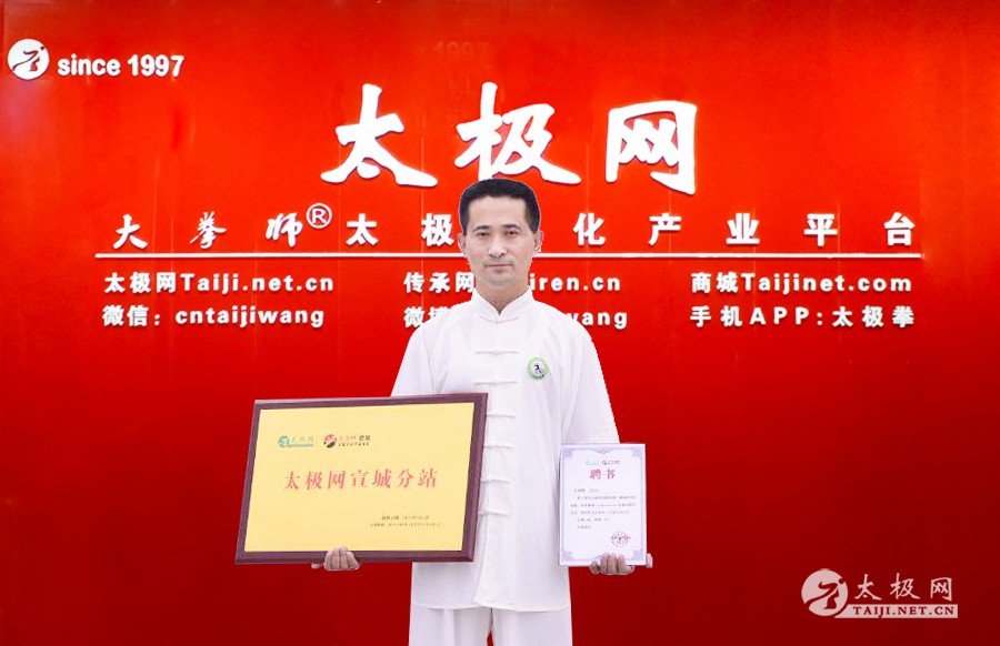 (太极网宣城分站)6月6日,太极网(taiji.net.cn)宣城分站正式挂牌成立,泾县陈式太极拳研究会会长王树教任分站站长。 王树教在接受太极网宣城分站站长聘任时表示,感谢太极网二十年来为太极拳传播所作出的贡献,更加感谢太极网对自己的信任,此次出任太极网宣城分站站长,自己将会以更加严格的标准来要求自己,同时继续加强太极拳的学习,无论是拳技拳法还是理论都需要比以前更加深入的了解。太极网宣城分站的建立也将进一步推进宣城及其周边地区的太极拳的推广和传播工作。王树教表示自己将会带领太极网宣城分站为太极拳传承人、拳师、拳馆服务,致力于打造一个让广大太极拳爱好者互通有无、相互交流、共同进步的平台,共同为弘扬太极拳、传播太极文化不懈努力!