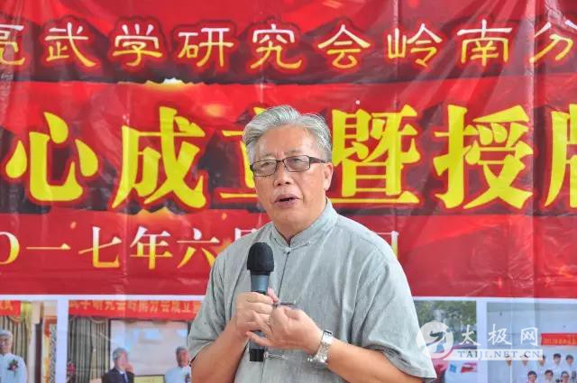 (太极网报道)6月18日,鸣生亮武学研究岭南分会新会辅导中心揭牌仪式,在江门市新会区双水镇万亩水库与鱼山水库环绕的“万亩百鸟朝庄健康养生文化园”隆重举行。 出席揭牌仪式的嘉宾有江门市武术协会主席索奇山先生、五邑大学文学院教授成慧芳女士、广州乐潇游国际旅行社有限公司总经理李素彬先生、东莞证券股份有限公司江门营业部总经理冯斌先生、鸣生亮武学研究会岭南分会会长兼总教练李日星教授、鸣生亮武学研究会岭南分会常务副会长陈重霖女士、鸣生亮武学研究会岭南分会副会长马秀梅女士和李日星教授的入门弟子及其眷属共40多人。 鸣生亮武学研究会岭南分会常务副会长陈重霖女士主持仪式 仪式由鸣生亮武学研究会岭南分会常务副会长陈重霖女士主持。她详细介绍了鸣生亮武学研究创立的来由和发展。鸣生亮武学研究会是著名武术家张全亮大师于2005年在北京创立的旨在研究鸣生亮武学、推广鸣生亮拳法、培养武术人才的研究机构和社会团体。张全亮大师自幼习武,先后拜八卦掌名家李子鸣和太极拳名家王培生习练梁式八卦掌与吴式太极拳,得到两位武学泰斗悉心栽培,全面继承了两位宗师的武学精华,形成了一整套融太极八卦于一体的精妙拳法——“鸣生亮拳法”。多年来,他在“中华武术名家大讲堂”传授吴式太极拳,在“中国内家拳名家大讲堂”教习梁式八卦掌,成为中国武术界颇具影响力的领军人物之一,其弟子遍布大江南北、海内海外。自创会以来,“鸣生亮武学研究会”先后在上海等地成立了8个分会,50多个辅导站。去年12月在江门成立的“鸣生亮武学研究会岭南分会”就是在全国继上海等分会之后的第8个分会。“新会辅导中心”将成为鸣生亮武学研究会岭南分会下属的第一个鸣生亮拳法教学机构。 索奇山主席 、李日星会长、成慧芳教授、李素彬总经理为新会辅导中心揭牌 索奇山主席、李日星会长、成慧芳教授和李素彬总经理共同为鸣生亮武学研究会岭南分会新会辅导中心揭牌。八卦掌、吴式太极拳第五代传人、鸣生亮武学研究会岭南分会会长李日星教授宣读任命书,任命八卦掌、吴式太极拳第六传人梁觉桦先生担任鸣生亮武学研究会岭南分会新会辅导中心主任。江门市武术协会索奇山主席致辞,高度赞扬鸣生亮武学研究会岭南分会在推广鸣生拳法,弘扬国术,促进传统武术进校园,培养学生以武健身,以武养性的尚武精神,提高整体素质所做出的贡献。李素彬、冯斌等嘉宾发表了热情洋溢的讲话;北京鸣生亮武学研究会会长兼总教练著名武术家张全亮大师、北京鸣生亮武学研究会副会长张卫公先生、江门市太极拳协会创会会长吴泽明先生、鸣生亮武学研究会上海分会会长王卫兵女士、鸣生亮武学研究会无锡分会朱文龙先生,以及鸣生亮武学研究会岭南分会理事李玲、阳孝鑫、于斌等纷纷发来贺信,对鸣生亮武学研究会岭南分会新会辅导中心的成立寄予殷切的期望。 李日星教授授予梁觉桦主任任命书 仪式上,新任鸣生亮武学研究会岭南分会新会辅导中心主任梁觉桦讲话,表示他将以太极图所揭示的阴阳互依,包容共赢的辩证原理,策划新会辅导中心的发展蓝图。 江门市武术协会主席索奇山先生致辞 广州乐潇游国际旅行社有限公司总经理李素彬先生致辞 东莞证券股份有限公司江门营业部总经理冯斌先生致辞 鸣生亮武学研究会岭南分会新会辅导中心主任梁觉桦先生任职讲话 鸣生亮武学研究会岭南分会会长兼总教练李日星教授讲话 鸣生亮武学研究会岭南分会会长兼总教练李日星教授表示,作为澳大利亚籍华人,梁觉桦先生不但具有在中国、美国、澳大利亚和香港就学的丰富学历,而且还有在粤、港、澳三地多家大型公司任职的丰富阅历。同时,他还从师于国学大师南怀瑾先生学习过打坐与参禅。自从他跟随我学拳以来,虚心向学,练功不辍。相信他能胜任新会辅导中心主任的职务,实现他继承和弘扬鸣生亮拳法的宏愿。鸣生亮武学研究会岭南分会新会辅导中心是鸣生亮武学研究会岭南分会成立的第一个下属武术教学辅导机构。它将以山青水秀的万亩水库和鱼山水库风景区为依托,融汇休闲、旅游、武术等养生文化元素,把“万亩百鸟朝庄健康养生文化园”建设成为企业高端人才旅游观光的胜地;社会有识之士休闲养生的会所;武林精英习武练拳的基地;海内外武术团体交流切磋,增进友谊的桥梁;传承鸣生拳法,培养武术人才的摇篮。 本站编辑:太极网陈超 |