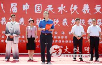 6月22日,2017年甘肃省全民健身运动会“甘肃银行·羲皇杯”太极拳比赛暨第二十八届中国天水伏羲文化旅游节“问道伏羲”羲皇故里伏羲太极拳展演在龙城广场开幕。甘肃省体育局局长杨卫,甘肃银行总行党委副书记,行长刘青,天水市人大常委会副主任王晓琴出席开幕式,副市长张建杰出席开幕式并致辞。参加太极拳展演的14支队伍为现场群众带来了较高水平的太极盛宴。据悉,6月23日上午将在伏羲广场继续展演。 (开幕仪式) (甘肃体育局局长杨卫宣布活动开幕) (天水市副市长张建杰致辞) (甘肃体育局向甘肃银行颁发突出贡献奖牌) 国内名家太极剑、拳对练 表演:世界太极道总会会长沈西京、伏羲太极道研究院副院长李尊智 伏羲太极道13式大型团体表演 表演:天水市伏羲太极道研究院、天水市伏羲中学 伏羲太极道13式大型团体表演 表演:天水市伏羲太极道研究院、天水市伏羲中学 陈式太极拳32式 表演:天水陈式太极拳研习会 孙氏精编40式 表演:天水灵之韵传统太极拳队 形意拳单练及对打 表演:周九俭、宋俊芳 伏羲太极道9龙4变 表演:天水伏羲太极道研究院 欧洲太极道负责人太极道二路 表演:德国伏羲太极道——汉堡训练馆馆长菲力 杨式太极拳40式 表演:麦积翠湖演练队 陈式太极拳老架一路选段 表演:秦安县陈炳太极院 太极缠丝棒 表演:天水伏羲太极道研究院 陈氏太极春秋大刀 表演:陈氏太极拳冉光耀拳术研究会副会长冉向阳 太极扇 表演:公园武校 国内名家八卦掌对练 表演:韩俊霞、尹鸿涛、马晓飞 陈式太极拳32式 表演:麦积羲皇太极养生馆 责任编辑:太极网孔春红 |