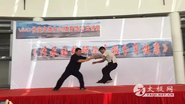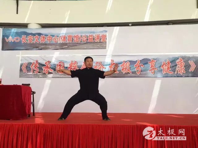 太极拳的核心缠丝功怎么练?又如何在套路中应用?怎样练习太极拳才能收到最大的健身效果?平时练功需要注意什么?上述问题也许是广大太极拳爱好者最关心的内容了。 6月29日,由张东武老师东莞弟子徐乐魁发起,特邀太极名家张东武老师主讲【传承国粹研论太极分享健康】的公益讲座在东莞市长安镇vivo长安文体中心举行,现场张东武老师就太极拳习练当中容易出现的问题,陈式太极拳缠丝功,及太极拳的实用方法等一一给予详细的讲解和示范。 据了解,张东武老师刚刚结束了罗浮山的太极拳培训班,近期的行程也早已排满,但是看到长安东武太极拳友会的热情,还是在百忙中抽出了时间,欣然受邀。该公益讲座从筹备到发布消息仅用了一天时间。在时间如此紧凑的情况下,现场约200多个座位座无虚席,不少拳友在讲座开始前半小时就到了现场,场面火爆。可见广大太极爱好者对太极拳的喜爱。