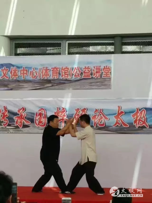 张东武老师以朴实的语言和生动的实例将太极拳枯燥的理论描述的通俗易懂,公开课上,博得了现场听众阵阵敬佩的掌声。 非常漂亮的两位美女主持人徐晶晶 、张宇欣,她们的主持端庄大方,亲切又不失冷静,丝毫看不出来他们是第一次做主持人。 张东武老师讲解出各种动作的劲路 推手展示 太极拳中推手用法展示 徐勤兰老师也应大家的邀请为拳友们表演太极剑 张东武老师弟子徐乐魁陈式太极拳展示 张东武老师与弟子徐乐魁(左)何和章在活动现场合影 |