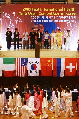 中国驻韩国大使馆文化参赞兼文化中心主任车兆和、韩中文化友好协会会长曲欢、印度尼西亚青年体育部部长苏帕尔曼、国际东岳太极拳协会韩国分会会长门阚红等出席了开幕式。车兆和参赞为大会作了热情洋溢的致辞,他说,“交流大会在展示中国传统文化的同时,也向来自世界各国的选手宣传韩国的旅游文化,增进他们与韩国同行之间的理解,加深彼此的友谊。希望以此作为宣传中韩两国文化的良好契机,为进一步扩大中韩文化交流与合作发挥更大的作用,为推动中韩及世界人民的友好做出积极的贡献。”李连杰的恩师吴彬教授亲自担任本次交流大会顾问。他在致辞中说,他曾经来韩国参加过奥运会、亚运会及多次体育赛事,但是出席这样民间举办的国际健康太极拳交流大会尚属首次,希望大会越办规模越大,越办越成功。曲欢会长介绍说,除了每两年举办一次大会以外,组委会正筹划明年举办国际健康长寿太极拳论坛,她还表示将为中国传统武术在世界上进一步发扬光大而竭尽全力。 大会开幕式上,中国、印度尼西亚、日本和韩国的选手分别表演了精彩的武术节目,赢得观众阵阵喝彩;比赛现场气氛紧张热烈,近400位肤色语言不同的太极拳高手进行比赛。他们年龄最大的83岁,最小的只有8岁,分老、中、青、少等四个年龄组分别展开了8式太极拳、16式太极剑、东岳太极拳等十余个项目的团体和个人赛,最终决出了各年龄组中的佼佼者。由于吴彬教练亲自担任大赛的总顾问,更保证了大赛的专业性、严谨性和规范性。 |