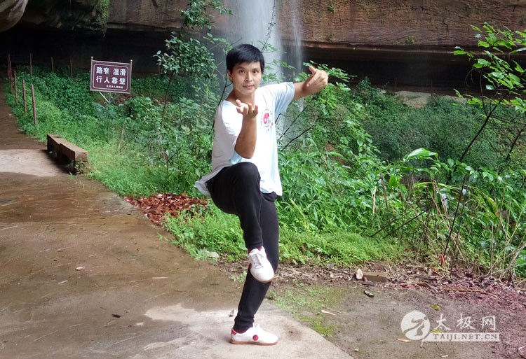 红洞风光无限好,太极阴阳古拳妙。天人合一悟玄机,山涧紫气冲九霄。