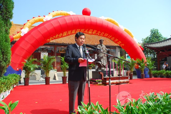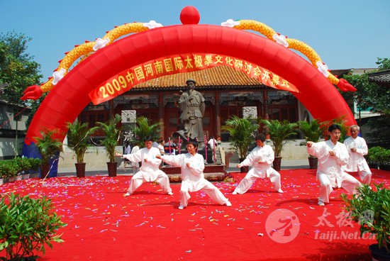| 8月30日上午,2009年中国河南太极拳文化研讨会在温县开幕。中国人民对外友好协会副会长冯佐库,省人大常委会副主任李柏拴,省外事侨务办公室主任、省对外友好协会会长冯永臣,省旅游局局长苏福功,省外事侨务办公室副主任李剑智,市委副书记、市长孙立坤,市人大常委会副主任张建设,日本太极拳联盟代表、日本产经新闻专任委员、日本代表团团长佐田近,意大利土河文化研究会副会长贾景文等出席开幕式。省外事侨务办公室副主任傅劲松主持开幕式。 冯佐库宣布:2009年中国河南太极拳文化研讨会开幕。 冯永臣对2009年中国河南太极拳文化研讨会的举办表示祝贺。 孙立坤在致辞中介绍了我市的概况。 本次研讨会共收到来自日本日中文化交流中心、三重县日中友协、大阪太极拳研究会,韩国太极拳研究会,意大利土河文化研究会交流协会,巴西河南同乡会,苏格兰中国协会,法国欧中友好协会,马来西亚马中友好协会等国外50多家对华友好组织发来贺函、贺电。李剑智宣读了部分贺电。 开幕式结束后,与会人员参观了中国首个非物质文化遗产类博物馆——中国太极拳博物馆。研讨会期间,还将举办太极拳书画展、太极拳表演、太极拳名师茶话会等活动。
