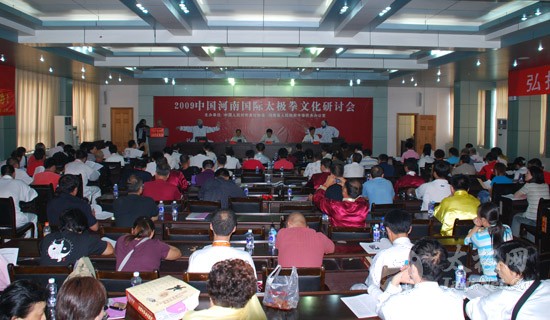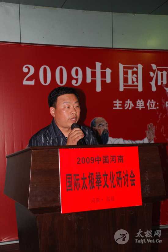[page] 本网总经理刘洪奇在向嘉宾介绍太极拳传承谱系工程 [page] 张东武在国际太极拳文化研讨会上 [page]