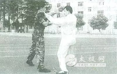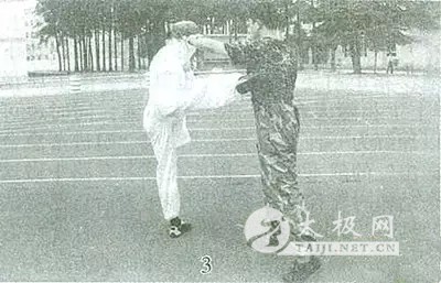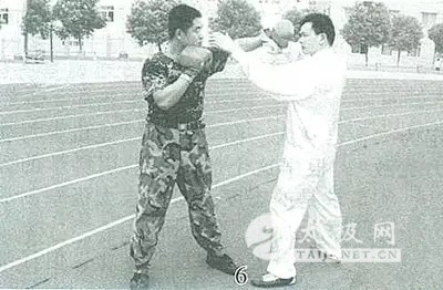陈式太极拳起势散手技法 说起太极拳格斗,大多数人都抱有怀疑态度,也有人会嗤之以鼻。毕竟张三丰、杨无敌等英雄大侠的高深莫测的武功,我们都是从书本或武侠影视片中看到的。所以人们不免要问:既然太极拳那么厉害,怎么没见过有人用太极拳打败过散打高手?甚至更多的人宁愿相信练三年太极拳的打不过练三个月散打的。事实上,我们看到的许多情况也确实如此。其实公园里练太极拳的人,从严格意义上讲,90%的人只进行外在动作的模仿,很少有人进行内在功力的训练,更少有人进行散手训练。这样的太极拳当然就只能是十年不出门了。为了让太极拳爱好者对太极拳有一个更全面的了解,本人把家传太极拳的格斗及训练方法整理出来,供太极拳格斗爱好者参考。我们以陈式太极拳老架七十四式为例,对每个招式的运劲方法、假想敌的拳脚进攻部位及我们防守反击的时机、方法,以及太极拳打手的训练逐一剖析,使真正的太极拳大白于天下,并使大家能够用科学的方法练好太极拳,强身健体,掌握防暴自卫的最直接方法,培养我们见义勇为时最根本的信心。 中华武术,不管哪门哪派的武术,用于格斗时都要求简捷、实用,太极拳也不例外。太极拳徒手格斗时所表现出来的从容,是丰富阅历、精湛内功、纯熟技艺的自然体现。我们要经过怎样的千锤百炼才能达到天下之至柔的太极技法捷若惊鸿、快如闪电、迅如炸雷、沾连黏随、不丢不顶、后发先至的机智功力呢?让我们追本溯源,了解拳术原创的本来面貌,并坚持苦练,达到太极拳在技击方面的一招制敌。 首先我们来探讨陈式太极拳的起势动作。陈式太极拳的起势动作是在自己身心自然松静的状态下完成的,这种松静状态也可以说是一种临战前的准备状态,是身心应战前的最后调整,同时起势动作也可以随时采取进攻与防守反击。王宗岳宗师《打手歌诀》日:“掤捋挤按须认真,上下相随人难进。任他巨力来打我,牵动四两拨千斤。引进落空合即出,沾连黏随不丢顶。”在这里我们暂且把它的技击原则界定为“舍己从人、防守反击、凭机智与功力克敌”。根据这个原则我们用科学的方法、实事求是的态度,对陈式太极拳制敌方法进行深入探讨、分析研究。 粗看起来,太极拳反复多变,但仔细推敲太极拳技击八法(掤捋挤按采捌肘靠)的技击原理,确是简单、实用。在套路练习中,我暂且把起势动作分为三个阶段或者说是三种不同的运劲方法。 第一阶段 分脚、起手、下坐,我们把它理解为松静蓄气或准备作战状态。当对手突然用右拳向我面部进攻时,我通过胯转(在太极拳重心转换时几乎都是通过胯转,也就是我们常说的走裆劲)使重心移于右腿,左臂向前左掤开来拳,同时右掌跟发力击打对手腰腹部(图1)。 图1 [练习要点]本动作是起势的开始动作,也是陈式太极拳的整套动作的开始。人们常说“一年之际在于春,一天之际在于晨”,我说“套路之际在于起势”。拳谚日: “行家一伸手,便知有没有。先看一步走,再看一伸手。”这就是说作为一个武者只要你架子一摆,你的功夫高低、身手如何、是进攻型还是防守型、身上有无破绽、破绽在哪,明眼人看一眼便知。由此可见起势的重要性。所以要想练好太极拳,不论是格斗训练或者是套路练习时都要慢慢体会动作要领,体会为什么要走裆劲、不走裆劲行不行,总结出自己的经验、教训、体会之后,你就会发觉突然跃上了一个新的台阶。当然,在练习太极拳时,并不是说动作越慢越好,而是通过慢动作练习找出动作的运劲方法、内气运行的路线,体会对手向我进攻时所使用的招式以及自己应对的办法。一切了然于胸后才能刚柔相济、快慢相间、随心所欲,达到练拳无人似有人、格斗有人似无人的境界。当然要达到这种境界极不容易,一个人能战斗就已经不易,而要想以弱胜强就更加难了。所以我们还要明白这个动作的掤劲与外家拳的不同之处:当对手突然用右拳向我面部进攻时,外家拳使用这个动作时左臂主要是小臂用力挂或格挡,右手进攻,而在太极拳中左臂棚劲主要是腰部发力,用身体整体协调力拨开对手,目的是让对手失去重心,使对手身体不经意间撞向我进攻的右手,使两力相撞,产生巨大杀伤力。 第二阶段 上动不停,对手右拳一击不中,又发左拳,这时我重心移于左腿,右臂拨开来拳,左臂顺势采劲砍击对手脖颈动脉(图2)。 图2 如对手格挡,我则起右腿抽击对手左肋部(图3); 图3 如对手闪避,我则重心右移起左鞭腿抽击对手左肋或踹击胸腹部(图4)。 图4 [练习要点]本势动作主要练习自身左突右闪的整体协调能力。我本人在学习之始,也有老师讲此动作是叼托手。即对手用右拳向我进攻时我左手叼抓对手手腕,左手上托其肘(图5)。在经过多次反复练习后,这作动作做得都不成功。试想:在双方快速的击打对抗中,要想击中对手一拳或一腿都很困难,更何况是要抓住对方快速运动中的手腕。 图5 第三个阶段 当我左鞭腿或踹腿被对手格挡或闪避开时,我左腿迅速前落,左掌快速前弹以掌指撩其面或插其眼、喉等部位(图6); 图6 待对手上防我左掌时,我右脚快速向前跟进,同时右掌掌指插击对手小腹或撩击其裆部(图7)。 图7 [练习要点]本势动作主要练习上攻下随、指上打下的能力,也就是拳谱上所说“上下相随人难进”的具体实施,同时也可以理解为一种上虚下实战法或“引进落空合