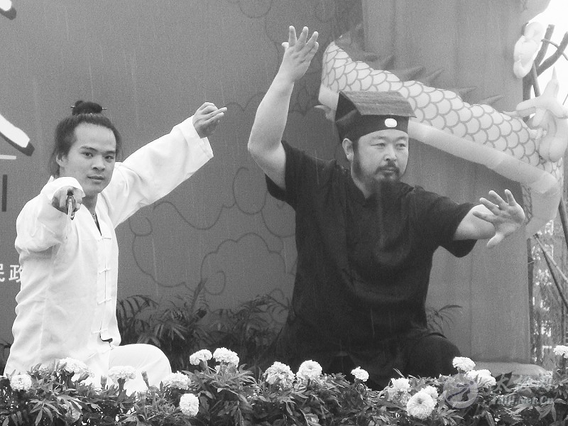 图一为梅花螳螂派弟子表演武艺图二为少林延庄大师表演武艺图三为昆仑掌门周金生表演武艺图四为峨眉掌门吴信良表演武艺图五为青城掌门刘绥滨表演武艺(记者 巩丽丽 摄)图六为崆峒派弟子表演飞龙双刀图七为武当掌门游玄德(图右)和弟子亮相(记者 刘璇 摄)注:图片顺序为先后上台表演次序 [page]