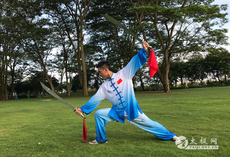 郭子毅参加太极网举办的第三届国际太极拳网络视频大赛,表演陈式太极双刀。