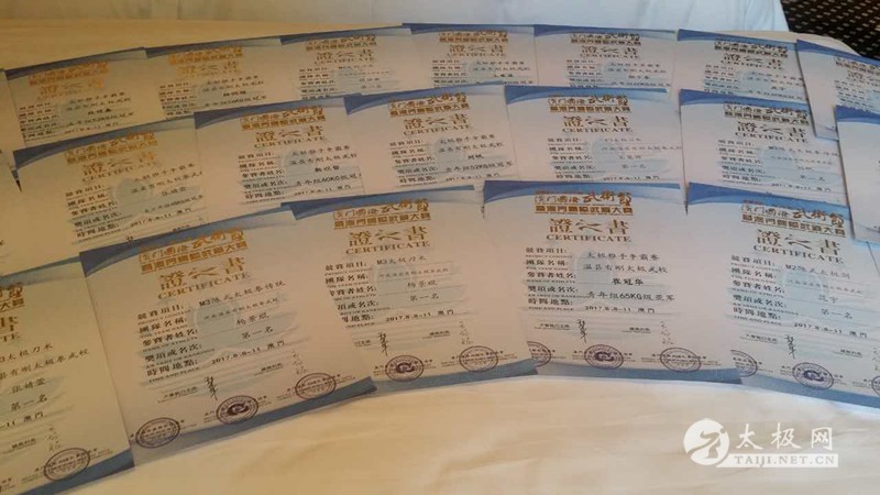 (太极网报道)近日,温县有刚太极武校在校长陈有刚的带领下,组织十一名太极健儿参加2017第六届澳门国际武术节暨澳门国际武道大赛。健儿们在赛场上努力拼搏,共获得奖牌28枚,金牌18枚、银牌8枚、铜牌2枚,斩获一个第四名,三个第五名和一个第六名,同时斩获推手冠军9人、亚军2人的优异成绩,并获集体推手奖团体第一名!获团体金奖! 温县有刚武校本次共派出十一名精英健儿,其中张婧萱获女子推手青年组48公斤级冠军、传统陈式太极拳第一名、传统陈式单刀第一名;王莫菲获女子推手青年组52公斤级冠军、传统陈式太极拳第二名、传统陈式单刀第一名;刘帆获男子推手青年组52公斤级冠军、传统陈式太极拳第二名、传统陈式单刀第二名;杨景琨获男子推手青年组52公斤级亚军、传统陈式太极拳第一名、传统陈式单刀第一名;段佳鑫获男子推手成年组52公斤级冠军、传统陈式太极拳第二名、传统陈式双刀第一名;杨润超获男子推手青年组56公斤级冠军、传统陈式太极拳第五名、传统陈式单刀第二名;赵彪获男子推手成年组56公斤级冠军、传统陈式太极拳第陆名、传统陈式单刀第三名;靳以哲获男子推手青年组6O公斤级冠军、传统陈式太极拳第二名、传统陈式单刀第五名;胡少东获男子推手成年组60公斤级冠军、传统陈式单剑第一名、传统陈式太极拳第四名;晁宇获男子推手青年组65公斤级冠军、传统陈式太极拳第一名、传统陈式单剑第一名;崔冠华获男子推手青年组65公斤级亚军、传统陈式太极拳第五名、传统陈式单刀第三名!这些健儿们在赛场上勇于拼搏,充分展现了太极拳发源地的强大实力,为家乡争得荣誉! 温县有刚武校校长陈有刚老师表示,健儿们能够在比赛中取得优异的成绩与他们平时的刻苦训练密不可分,此次带队参加澳门国际武术节暨澳门国际武道大赛既是为了让学员们通过大型赛事检验自身的学习成果,展示太极拳发源地太极风采,同时也是一次以太极为媒加强澳门与内地文化交流的盛会,充分展示了太极拳无穷的魅力,同时他也希望有刚武校的健儿们能够再接再厉,取得更多更好的成绩,为太极拳的传播和推广贡献自己的力量。 责任编辑:太极网陈超 |