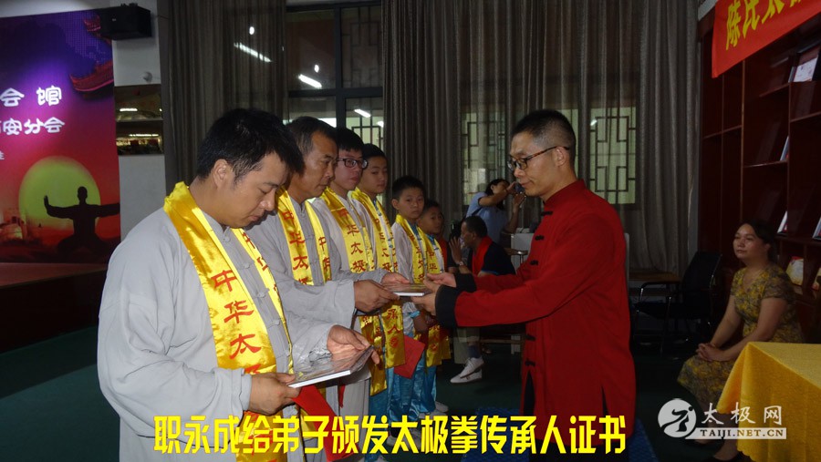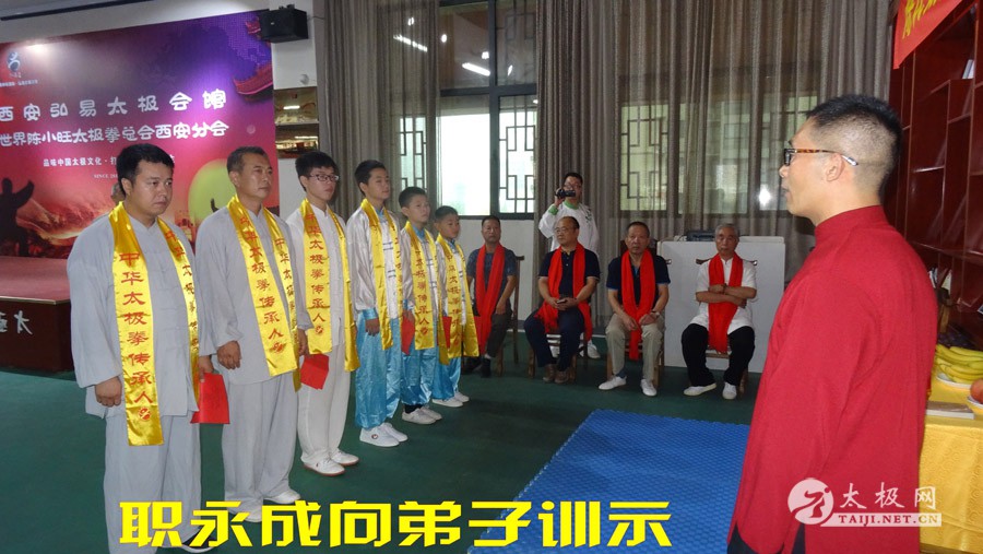 2017年8月19日上午,陈式太极拳传承人职永成的收徒仪式在西安市弘易太极会馆举行。6名太极拳弟子如愿成为其门下弟子。 职永成原籍太极拳发源地温县,现居西安市。自幼受家乡太极拳氛围的熏陶,先后拜陈式太极拳著名传人陈永福、陈小旺为师学习陈式太极拳小架和大架。并受过多位太极拳 名家的指导。在诸多名师、名家的亲授下,职永成练就了一身精湛的太极拳功夫,精通陈式太极拳多种套路器械。其浑厚的武术功底和谦虚恭友、诚信友善的为人,深受各界人士的称道。特别是受到众多太极拳爱好者的追捧。在西安市,太极拳追随者甚多。 近年来,在众多朋友的力推和支持下,他在西安市成立了弘易太极会馆,汇聚了大批太极拳和健身爱好者。以弘易太极会馆为依托,职永成在当地广泛深入开展太极拳“六进”活动,为西安市的全民健身事业做出了很大贡献。 职永成现任世界陈小旺太极拳总会西安分会会长、西安市莲湖区武协副主席,西安市弘易太极文化传播公司董事长,为中国温县国际太极拳年会太极拳名师、西安市一级太极拳辅导员、太极网全媒体首席武术导师、2016年太极网传播盛典年度表彰活动“十大武术馆校校长”,是西安市太极拳界当代一位知名且活跃的太极拳传人。 经过长时间的认真考察,几名向他学拳多年的太极拳爱好者终于如愿以偿地拜师成为弟子,开启了职永成太极拳传承的新篇章,标志着职永成太极拳事业新的发展。 拜师仪式按照传统的仪式隆重举行。在庄严的气氛中,参加仪式的所有人员,受到了一次中国传统礼仪的熏陶,体会到了中国传统文化的博大精深和其厚重的育人修德作用。 |