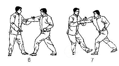 [要点] 甲要乘乙向前猛推之势,借其力将乙向后捋出。在捋时,上身要正直,要充分利用上身向左转的力量,使捋的效果更佳。
