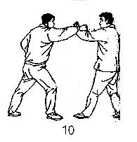 1.掤势 (1)乙上步用右拳击打甲;甲立即起左手外格其腕步。(图10)
