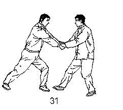 1.乙上左步用双拳击打甲方;甲立即用双手下按。(图31)