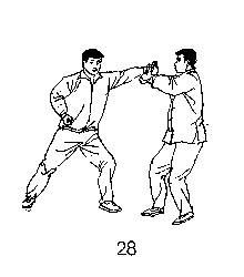 1.乙用左拳击打甲方;甲方应用双手交叉上架其冲拳。(图28)