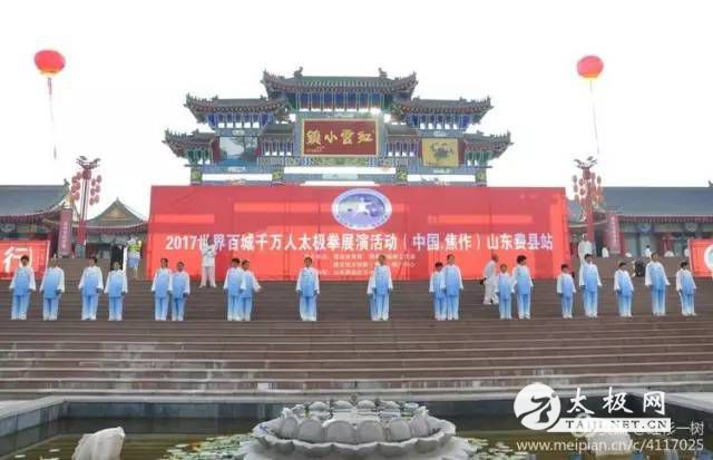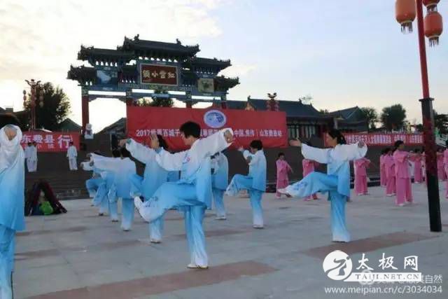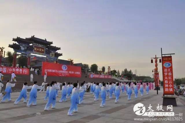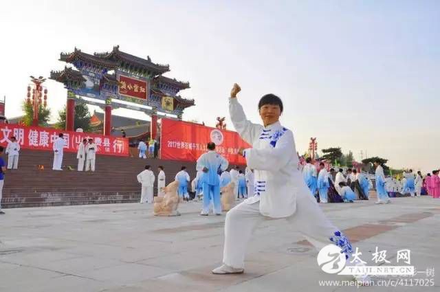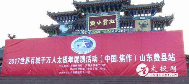 2017世界百城千万人太极拳展演活动(中国焦作)中国焦作——费县站2017世界百城千万人太极拳展演活动,是彰显中国大国文化自信的一次太极盛会,是为了进一步弘扬太极文化,挖掘太极拳内涵,提升太极拳影响,全力打造享誉世界太极文化圣地的一次重大活动;是放眼全世界,集中展示中华传统武术精粹——太极拳独特魅力的一次活动。长寿之乡费县百人太极拳爱好者积极相应,于2017年8日27日在红云小镇进行展演。 本次太极拳展演活动的口号是: 共享太极,共享文明,健康中国,长寿之乡山东费县行。