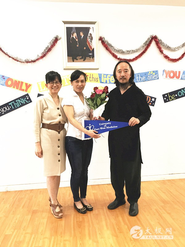 其间参访美国加州国际医药大学,与校长長Dr Doreen Simmons, 副校長:Richard Friberg交流。该校为美国教育部确定唯一可以颁发太极硕士文凭的院校,由创校校长王英秋先生在博士院师生见证下,向刘绥滨颁发客座教授证书。