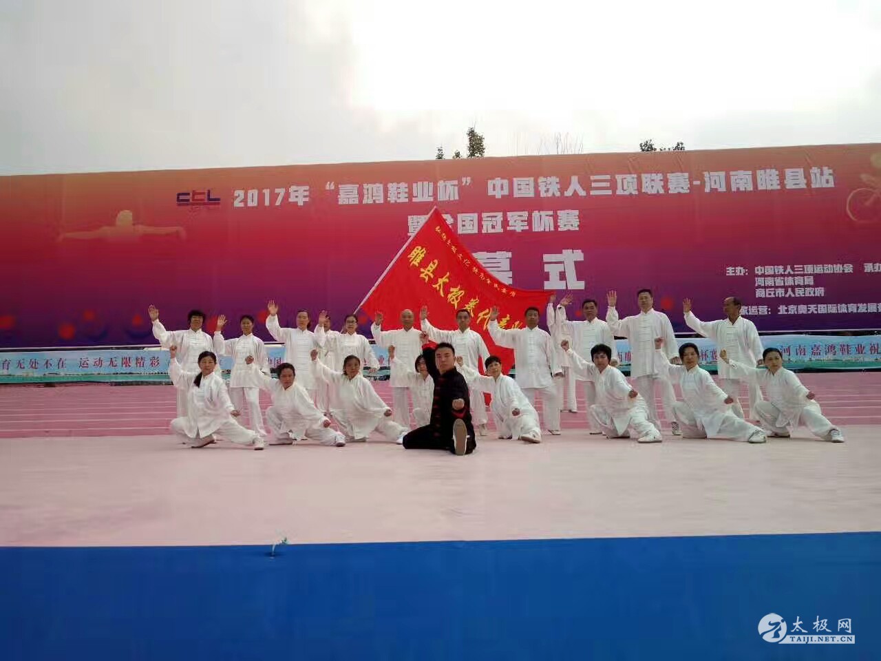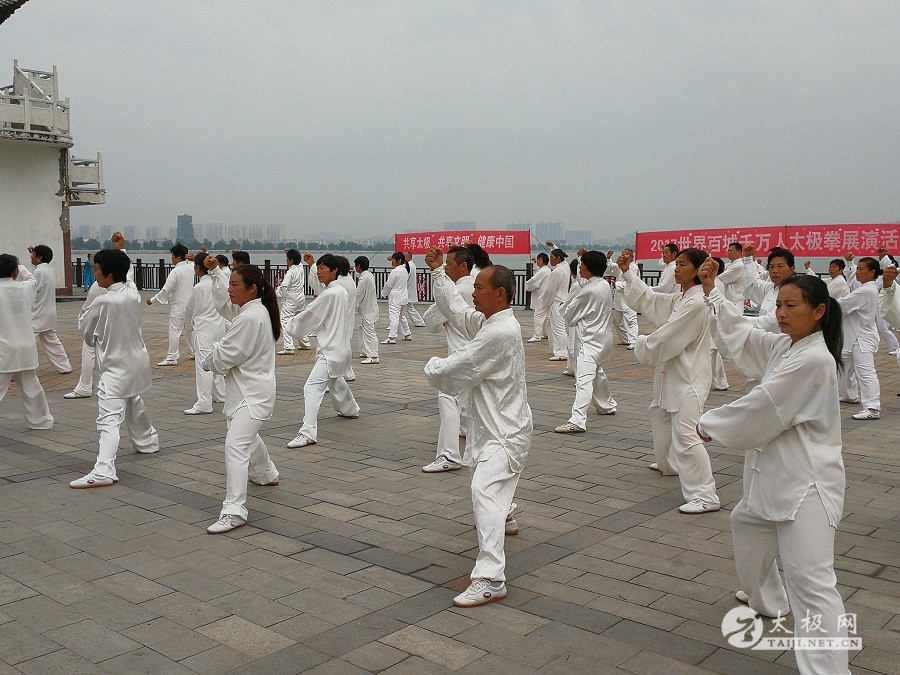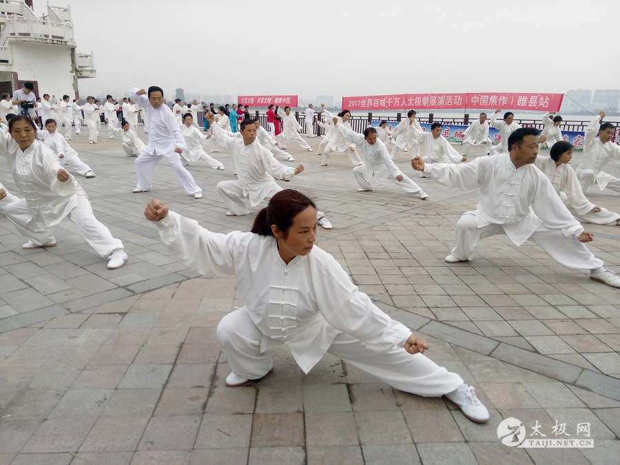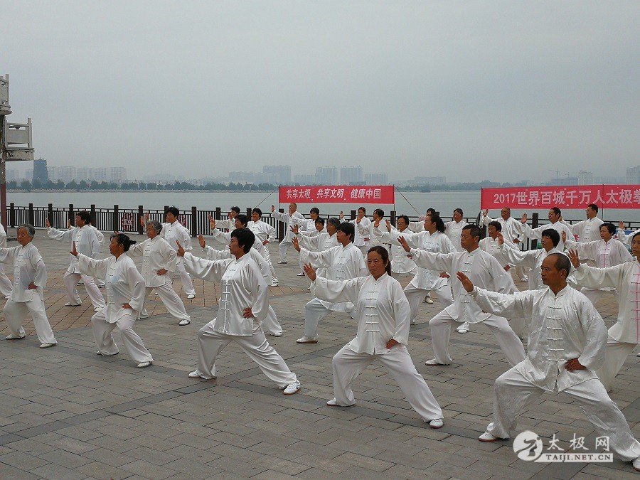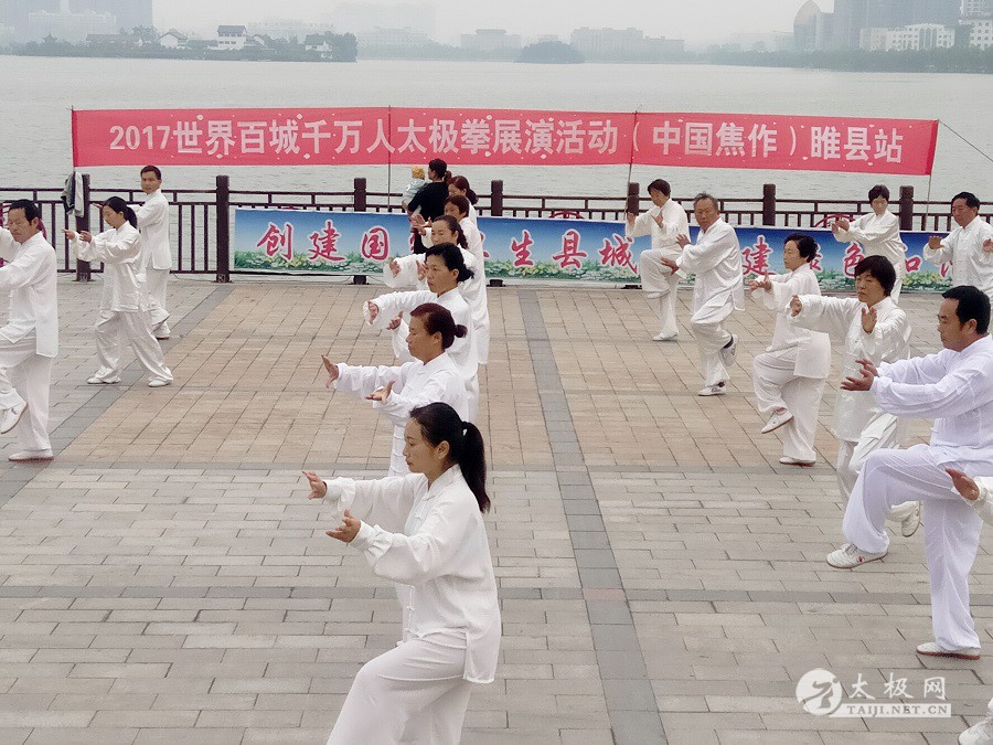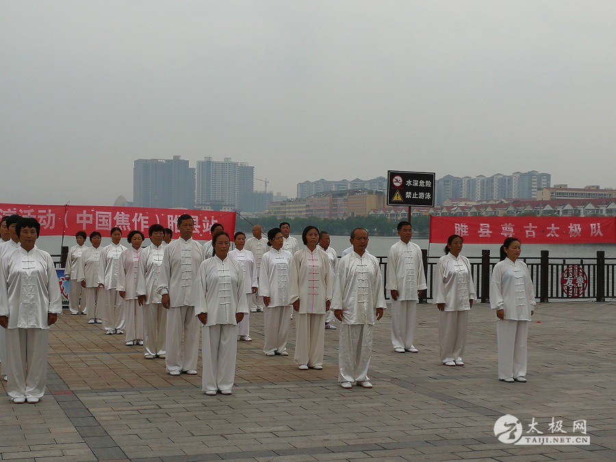(太极网报道)9月3日,2017百城千万人太极拳展演活动(中国·焦作)睢县站成功举行,活动由睢县太极拳协会会长朱殿起、名誉会长褚亚龙等发起,在睢县太极拳协会的积极组织下,活动得到了县领导以及当地电视台的大力支持,80名太极拳爱好者汇集睢县北湖南码头,统一身着白色太极服在朱殿起会长的带领下同练太极。共享太极、共享健康! 以下是活动盛况集锦,更多精彩视频请关注太极网后续报道。 |