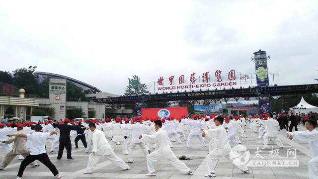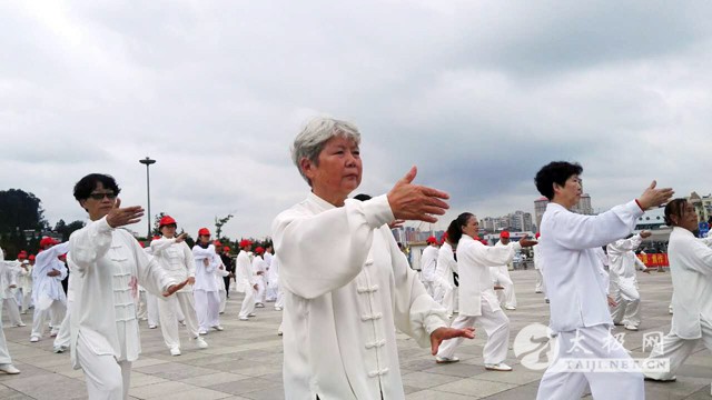 百城千万人太极拳演练活动得到了昆明市各级领导、各级部门和广大拳师的大力支持。在启动仪式现场,在《春江花月夜》乐曲伴奏下,当地300余名太极拳爱好者集中演练了太极拳。太极人身着潇洒飘逸的太极拳服,用刚柔相济的拳姿展示出太极人的阳光与自信。       |