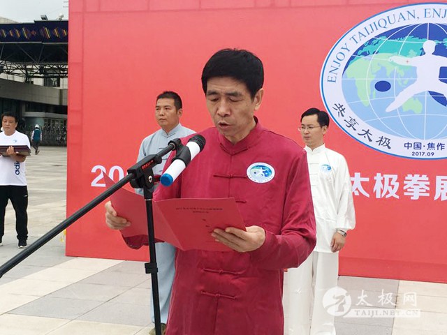 (太极网报道)9月3日上午9时,2017世界百城千万人太极拳展演活动昆明站启动仪式在昆明世博园门前广场启动。焦作市政协主席秦海彬、政协副秘书长赵玉辉,温县县委副书记李培华,云南省武术协会副主席郭俊国、云南省国际旅行社天怡旅游总经理薛海青、陈鑫太极拳云南昆明传习馆馆长张瑞等出席启动仪式。启动仪式由李培华主持。