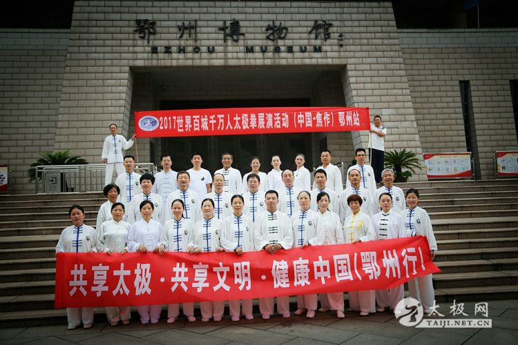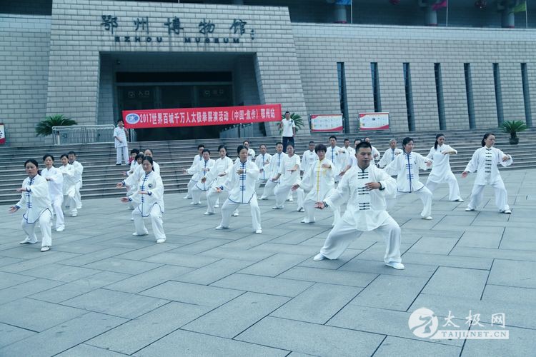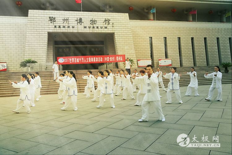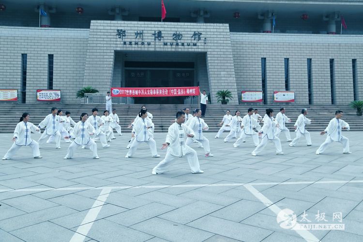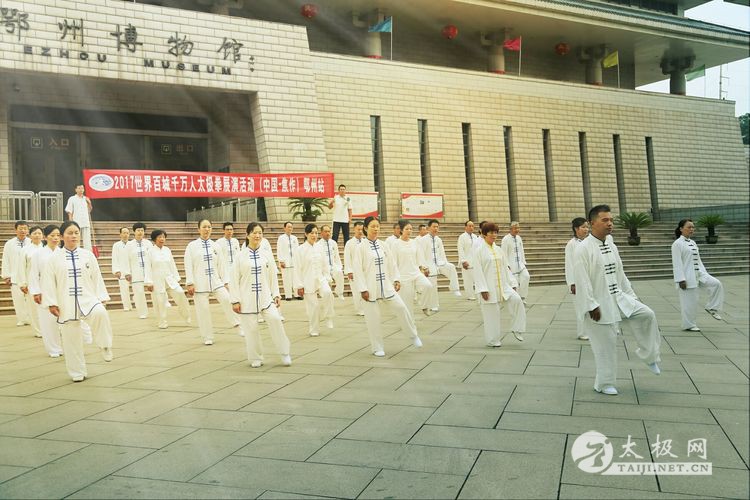百城千万人太极拳展演鄂州站 (太极网报道)9月1日,2017世界百城千万人太极拳展演活动在河南温县陈家沟启动,之后在国内165个城市和国外25个国家的30个城市传递。 为积极响应世界百城千万人太极拳演练活动号召,倡导共享太极、共享文明,由陈家沟优秀青年拳师陈铮发起,由鄂州陈炳太极馆积极组织当地学员参与。9月2号,2017世界千万人太极拳展演活动(鄂州站)在鄂州博物馆举行活动得到了广大太极拳爱好者的积极支持和参与,全体成员身穿白色太极同练太极,场面壮观,活动反响热烈,激发了鄂州地区太极拳爱好者的练拳热情。 责任编辑:太极网陈超 |
