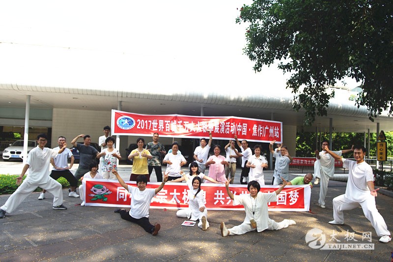 (太极网报道)2017年世界百城千万人太极拳展演活动自9月1日于陈家沟拉开序幕,历经数日依旧热度不减,在全国乃至全球掀起了一股太极拳的热浪。太极拳大师“大刀王”陈照森向陈照森太极拳体系全体成员发出倡议书,号召体系成员积极参加展演活动,展示太极拳风采,展现太极人英姿,助力太极拳申遗,推动太极拳发展。陈照森太极拳功夫学校广州推广中心及武之缘太极队在陈锦妮教练的组织下于广州体育馆三号馆进行太极拳展演,共享太极、共享文明。 陈锦妮领练太极功夫扇、太极剑 活动现场 责任编辑:太极网陈超