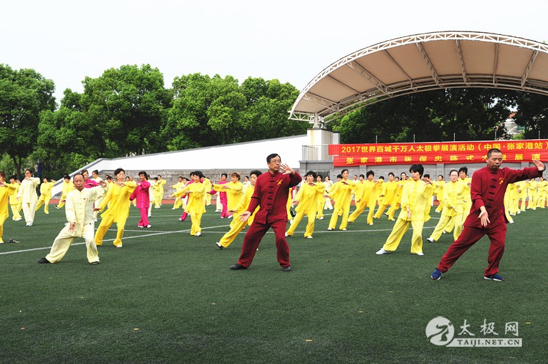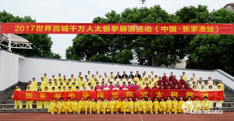 张家港市张保忠陈式太极拳展演活动 (太极网报道)9月1日,由张家港市武术协会主办,张家港市杨舍镇河南村承办的2017世界百城千万人太极拳展演活动(中国·张家港站)于张家港市杨舍镇塘市中学体育场举行,在太极名师张保忠的入室弟子缪永高的积极召集发动下,一百五十名太极拳爱好者同练太极,场面壮观!活动得到了当地政府及相关单位的大力支持和参与,参与与此次活动组织人员有:张保忠名师的入门弟子黄卫兵、庞志贤、缪永高、黄云南、梁剑荣、孙如明、师厚春、徐惠娟,同时积极组织参与活动的还有吴贤芳、殷振俊、殷正华、杨舍镇河北村党总支书记钱旻、杨舍镇南庄村党总支书记徐海栋等。 据悉,缪永高系太极名师张保忠的入室弟子,现任张家港市杨舍镇塘市办事处副主任、张家港市杨舍镇河南村党总支书记、张家港市武术协会副秘书长、苏州市二级社会体育指导员。 近年来,在缪永高同志的带领下,积极组织村民学习太极拳和各种健身活动,用自己学到的拳艺,不断推广传播给村民,使村民在业余时间从麻将桌上走向全民练拳健身之路,得到了社会各界的好评。在历次的太极拳比赛活动中,组织带领村民积极参与各类比赛活动,并多次荣获个人及团体比赛的奖励:在2013年获张家港市体育局举办的健身培训交流赛中获太极拳比赛二等奖;在2014年张家港市“人社杯”太极拳比赛展演“42式太极拳”荣获个人第一名;在2016年参加张家港市镇级太极拳比赛中荣获团体第一名;在2017年5月参加苏州市太极拳比赛荣获团体第一名;在2017年5月在经开区(杨舍镇)第二届职工文化艺术节暨2017塘市办事处全民健身节,组织400余人参加陈式太极拳展演活动;在2017年第五届退休人员暨第九届“人社杯”太极拳(械)比赛中分别荣获个人金奖、团体金奖、银奖。 目前,张家港市杨舍镇河南村的太极运动在缪永高书记的带领下,得到了蓬勃发展,是全市村、社区太极拳运动的典范,得到了市体育局和社会各界的充分肯定。 本站编辑:太极网陈超 |